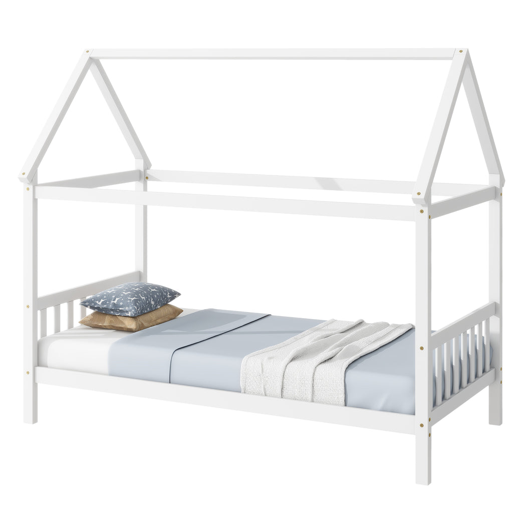 Transform bedtime into an adventure with our Twin House Bed, crafted from durable Malaysian rubber wood for lasting quality and a whimsical design. This white, house-shaped bed inspires imagination while its intelligent structure offers private, cozy sleep and spacious under-bed storage. Enjoy easy assembly and a sturdy platform, ensuring sweet dreams and a clutter-free room for your little one.