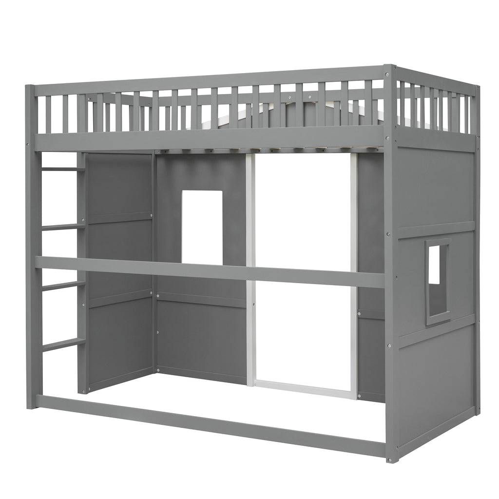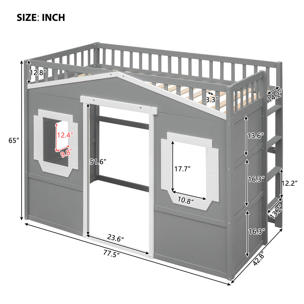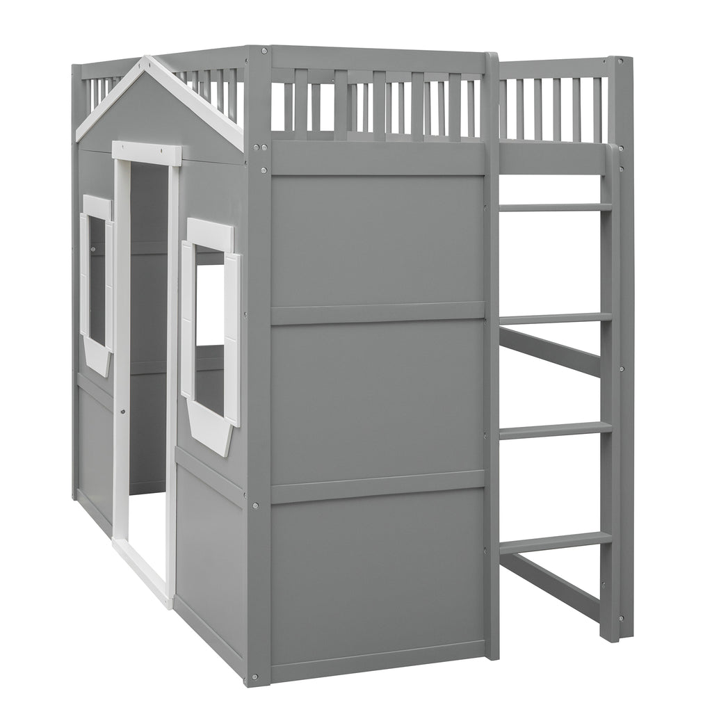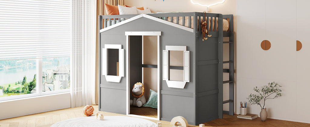 Maximize space and style with this elegant Twin Loft Bed, crafted from solid pine wood for lasting durability and stability. Its modern white+gray design effortlessly elevates any bedroom, featuring sturdy guard rails and a slanted ladder for safety. Enjoy a comfortable, no-box-spring sleep solution that keeps your mattress fresh for years.