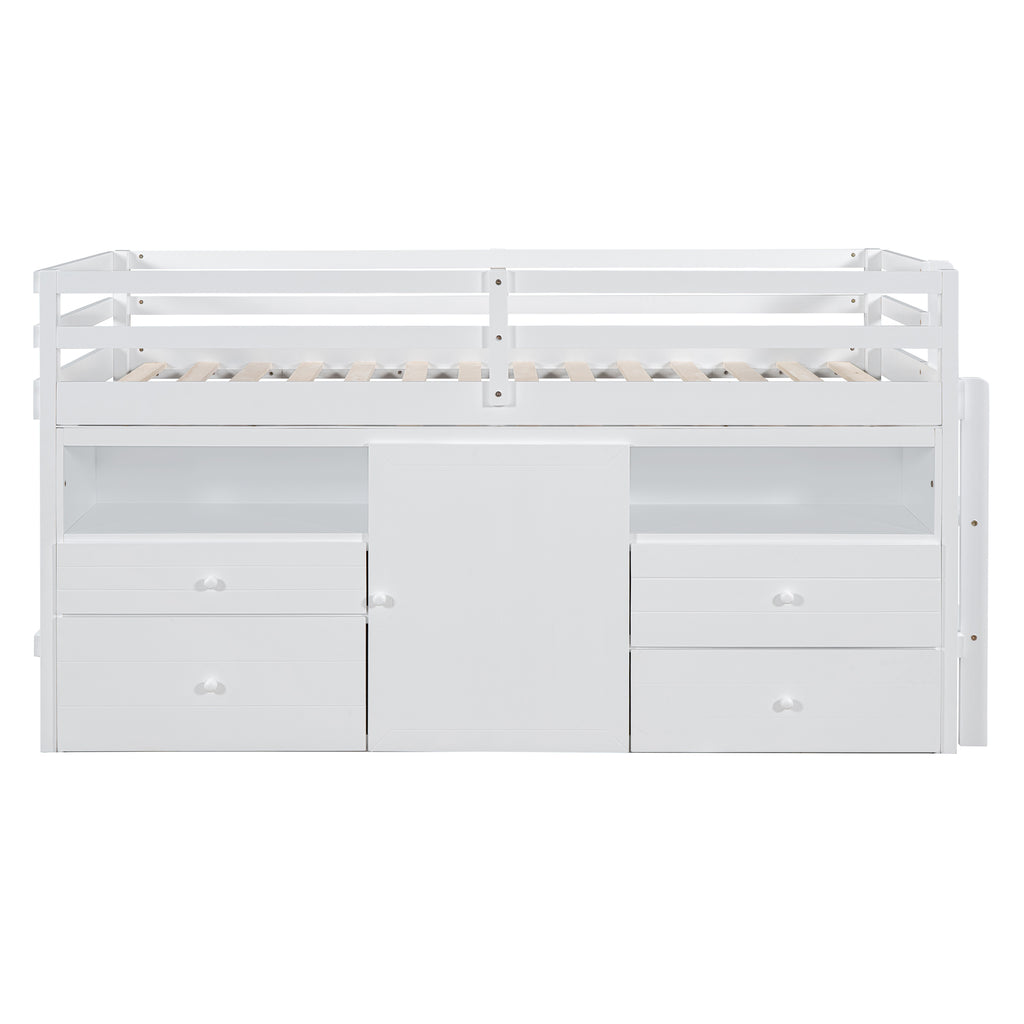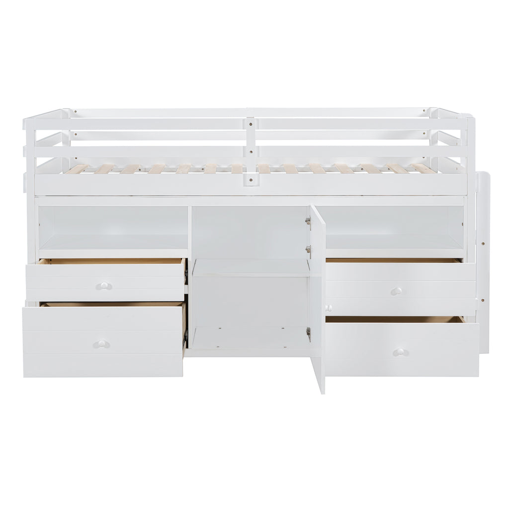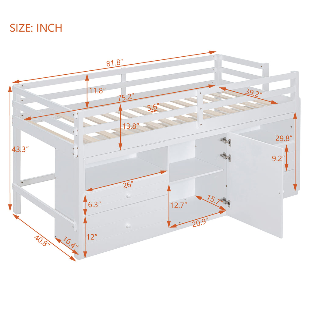 Maximize space and style with this elegant twin loft bed, crafted from solid wood and MDF for lasting durability and safety. Featuring integrated drawers, shelves, and a cabinet, it offers unparalleled storage to keep any room tidy and organized. This versatile, modern design is perfect for optimizing small spaces while adding a sophisticated touch to your home.