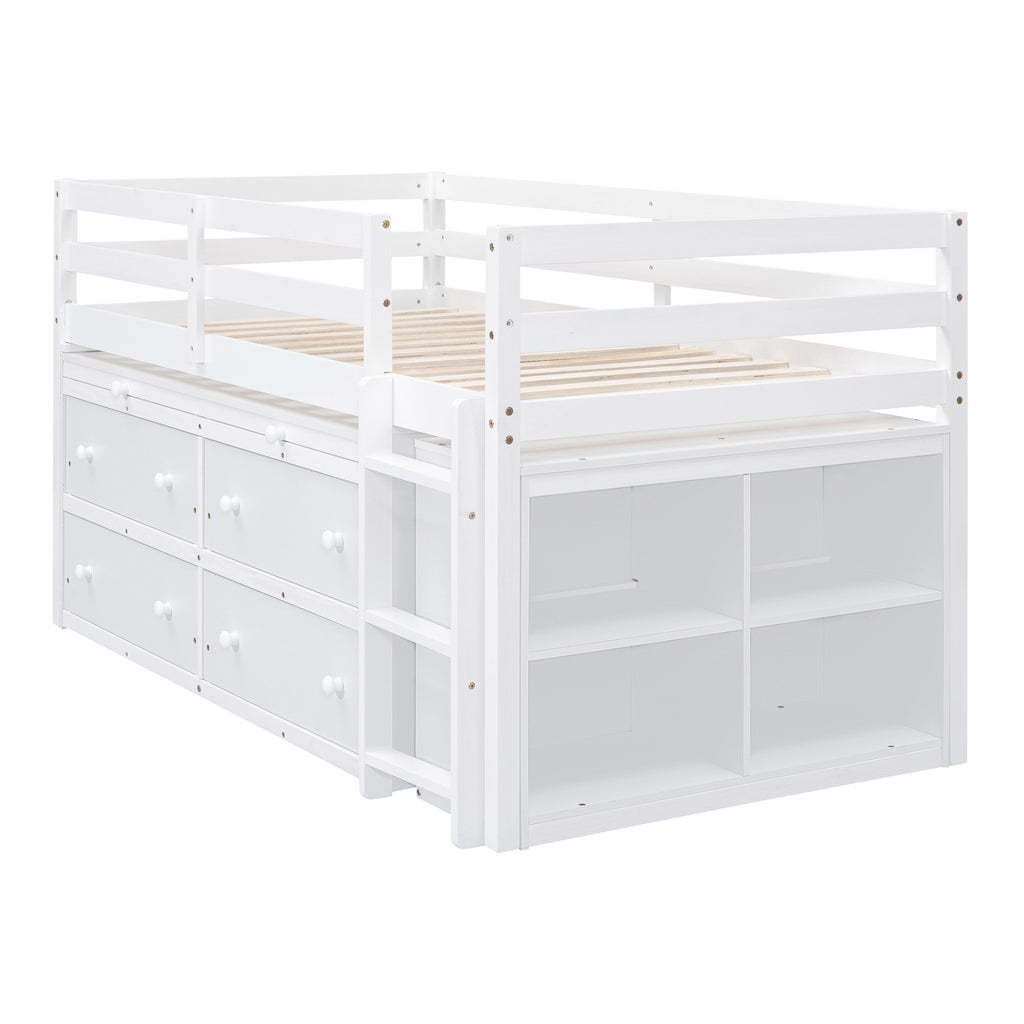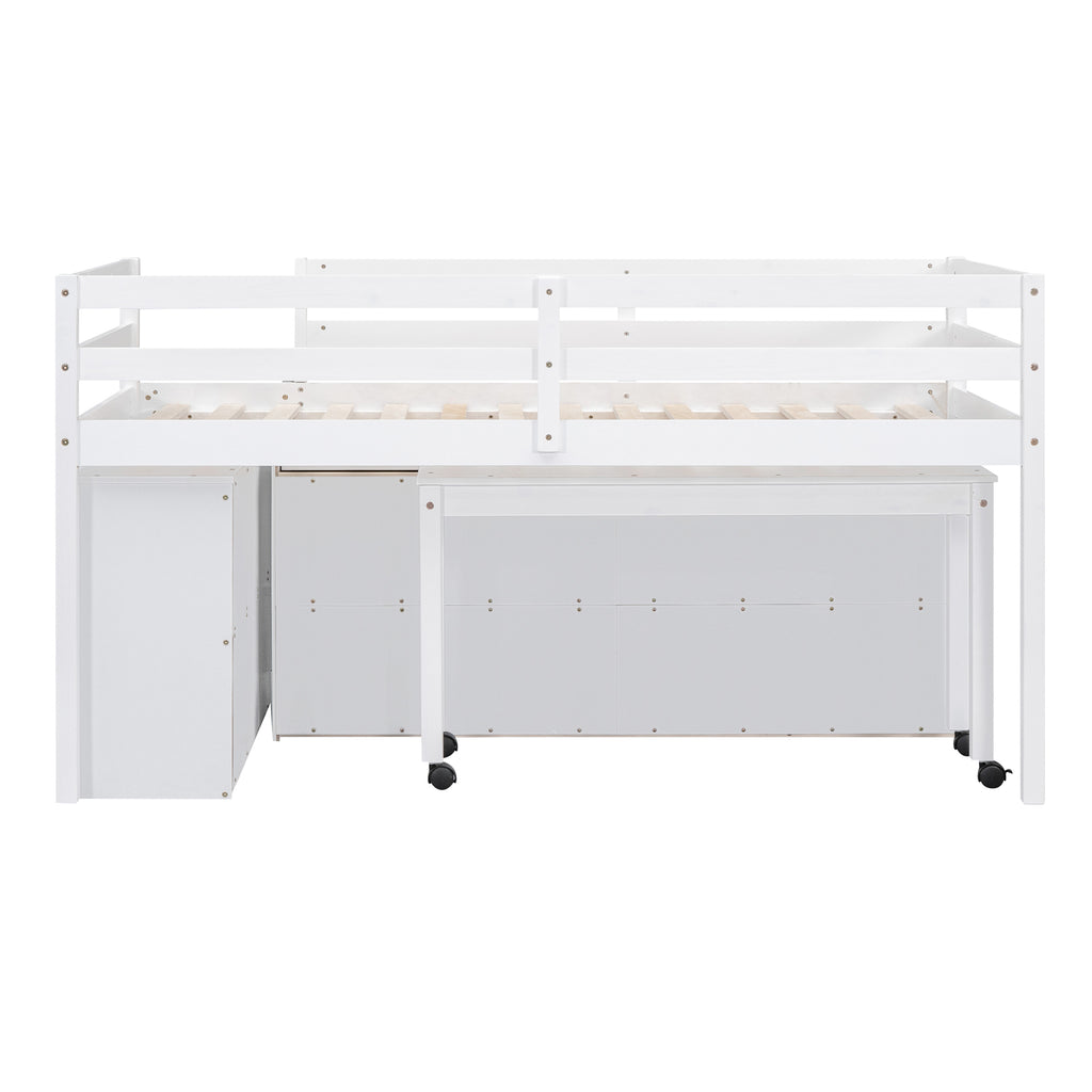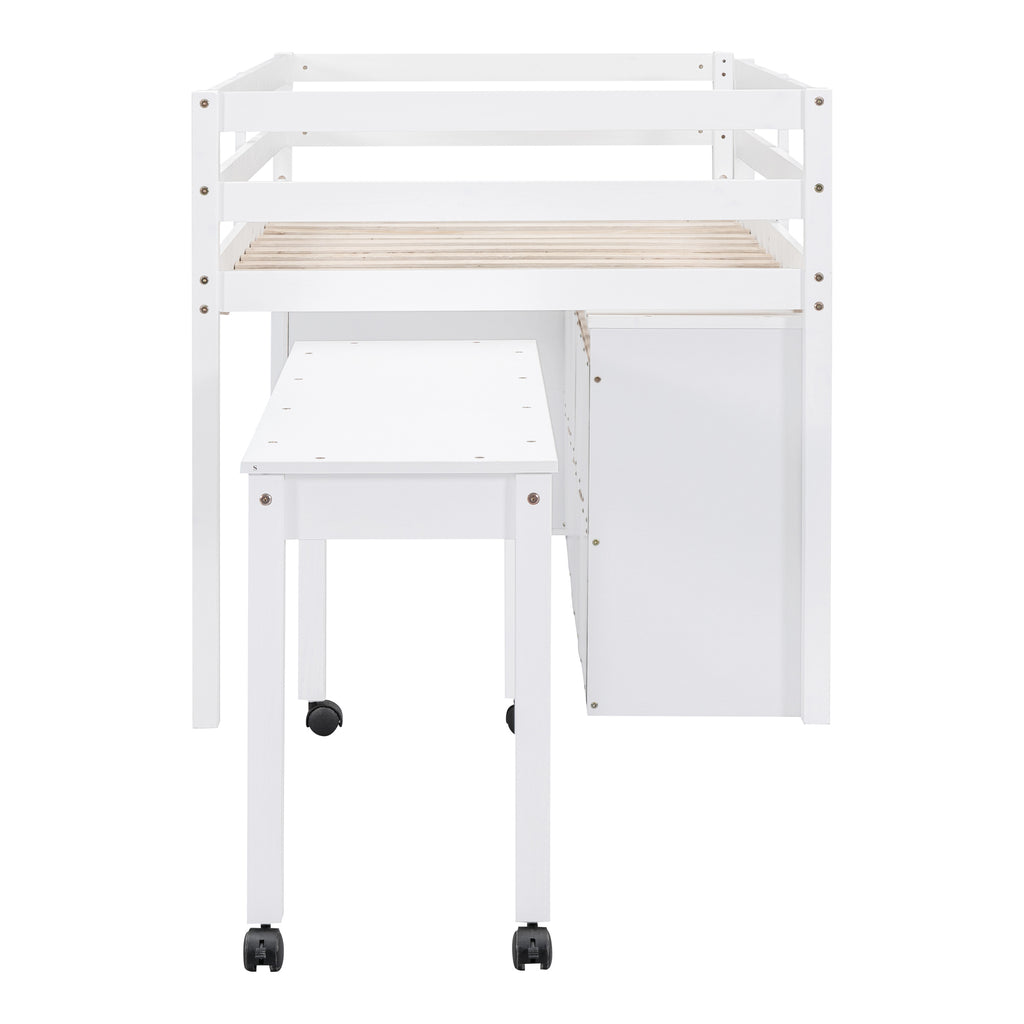 Maximize space and functionality with this versatile solid wood twin loft bed, featuring a retractable desk, a portable desk, and four large drawers. Crafted from durable pine wood and MDF, it offers secure study and storage solutions perfect for any bedroom. Enjoy convenient assembly and a sleek design that blends seamlessly into your decor, enhancing organization and productivity.