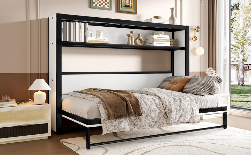 Maximize your space with this innovative Twin Size Murphy Bed, featuring a clever foldable design perfect for small rooms. Enjoy integrated shelving for convenient storage, keeping essentials tidy and easily accessible. Crafted with a durable, quiet metal frame, this stylish wall bed ensures lasting comfort and functionality.