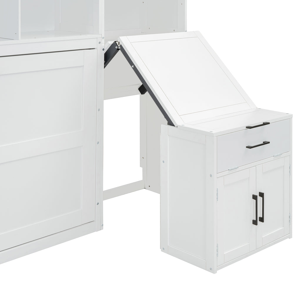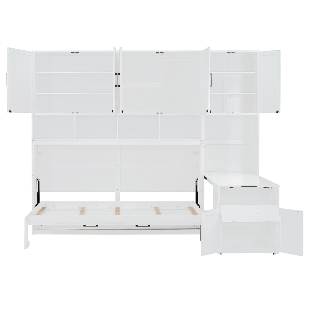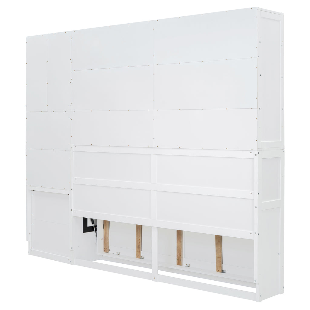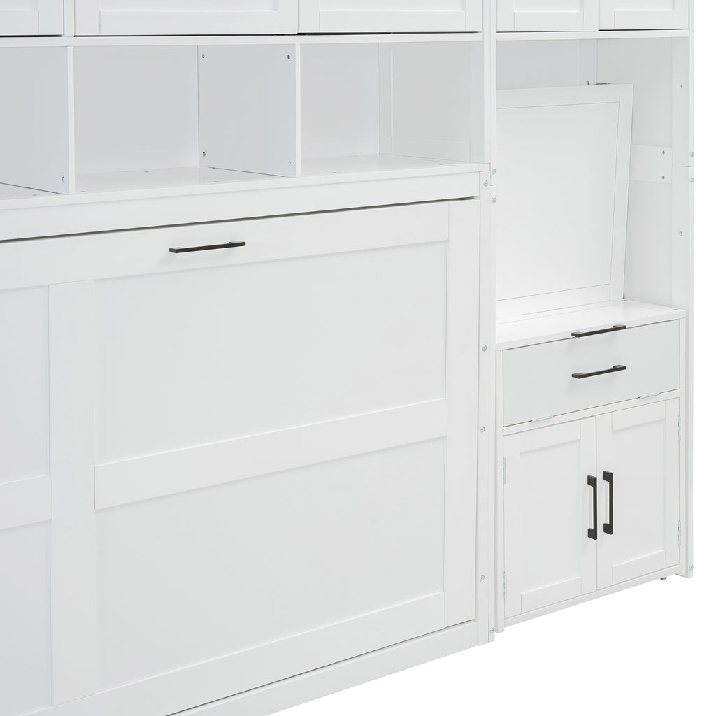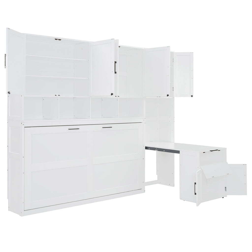 Maximize your living space with our Twin Murphy Bed, expertly designed in white MDF+LVL for seamless integration and sleek style. Featuring integrated storage like a top shelf, side wardrobe, and drawers, it keeps your room impeccably organized and clutter-free. Enjoy customizable configuration and a robust 400lbs capacity, making this a versatile and elegant solution for any modern home.