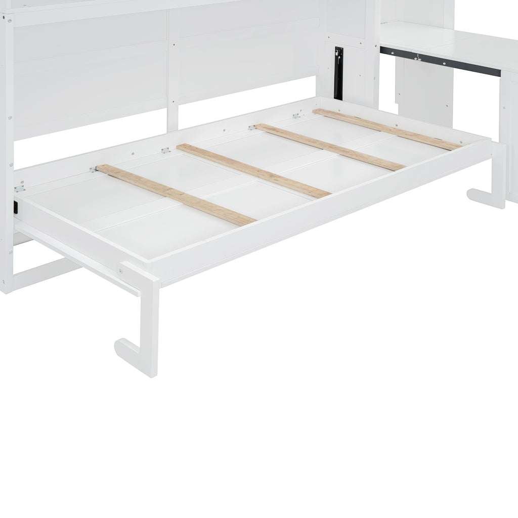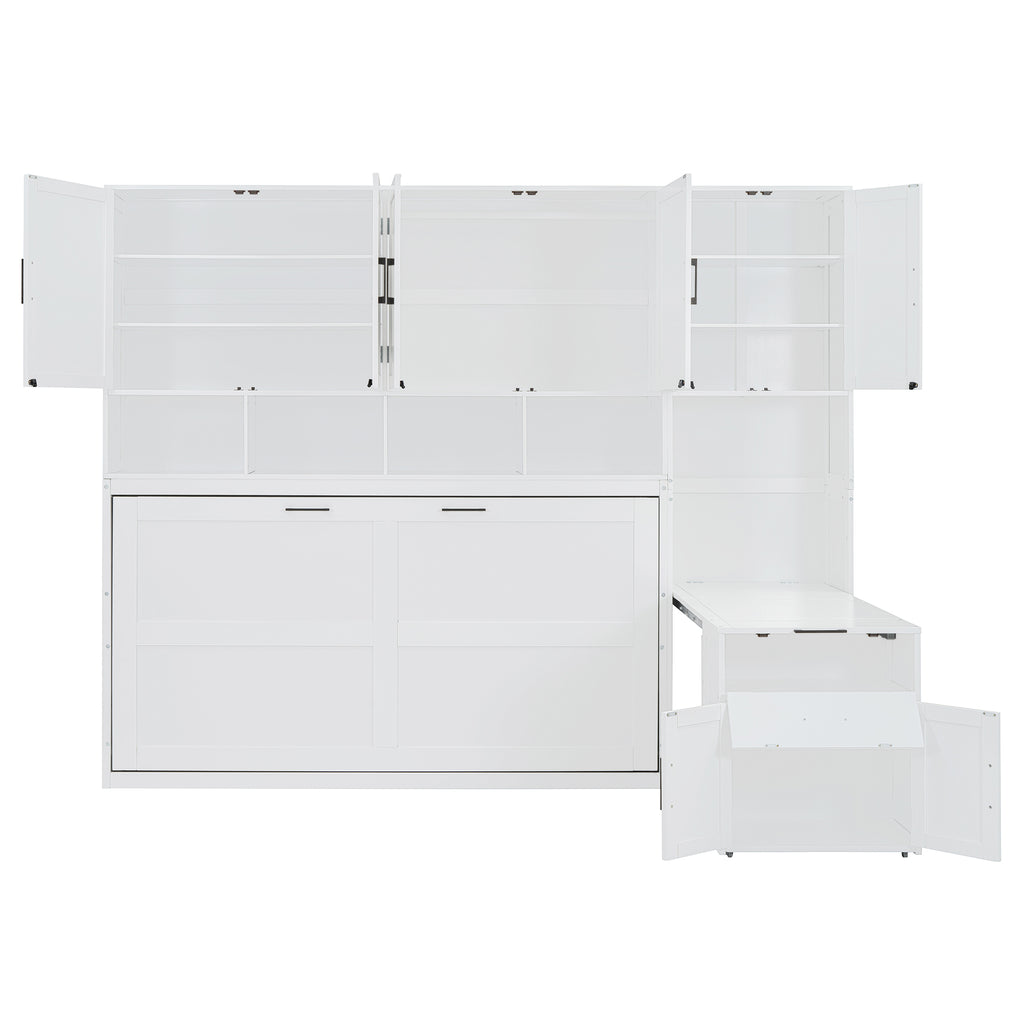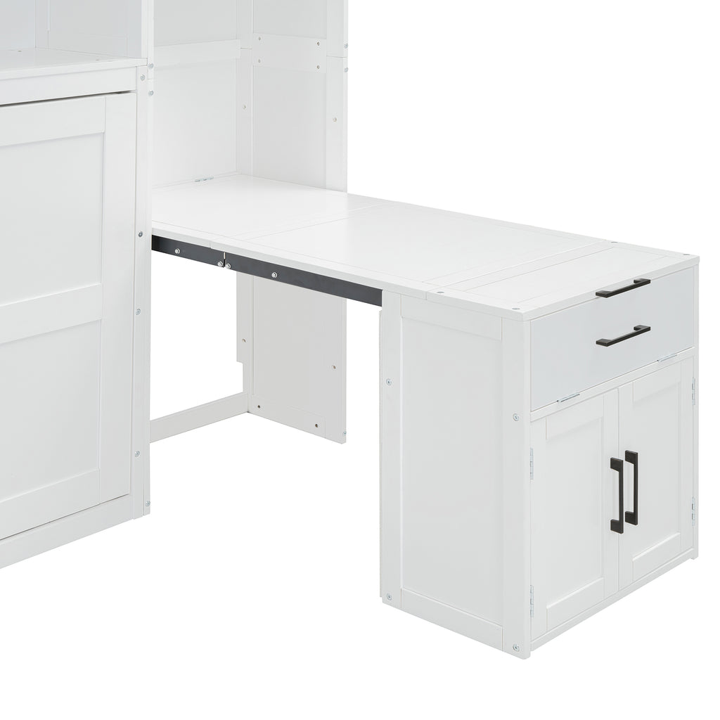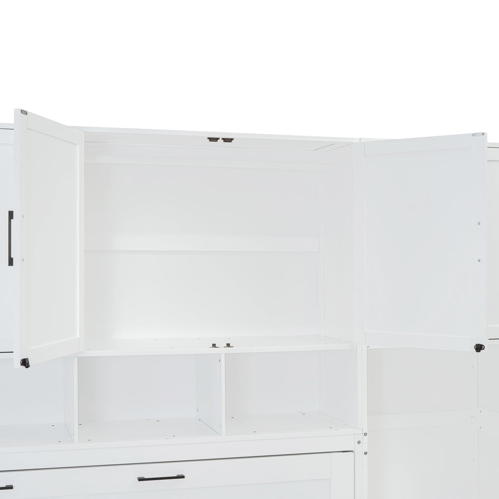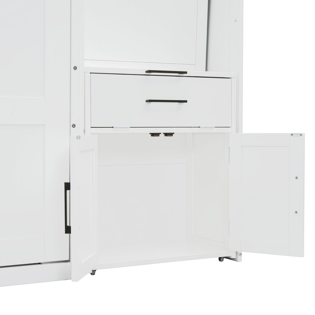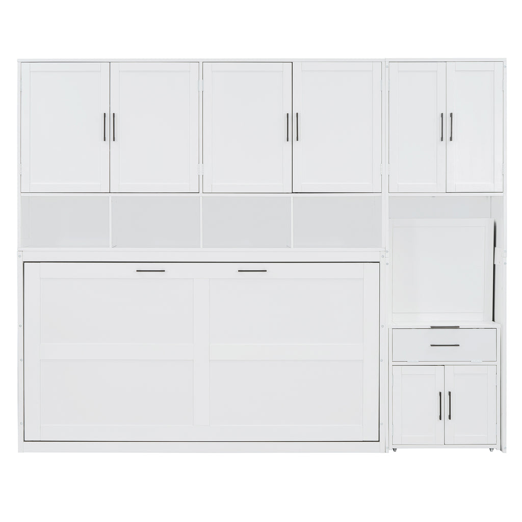 Maximize your living space with our Twin Murphy Bed, expertly designed in white MDF+LVL for seamless integration and sleek style. Featuring integrated storage like a top shelf, side wardrobe, and drawers, it keeps your room impeccably organized and clutter-free. Enjoy customizable configuration and a robust 400lbs capacity, making this a versatile and elegant solution for any modern home.