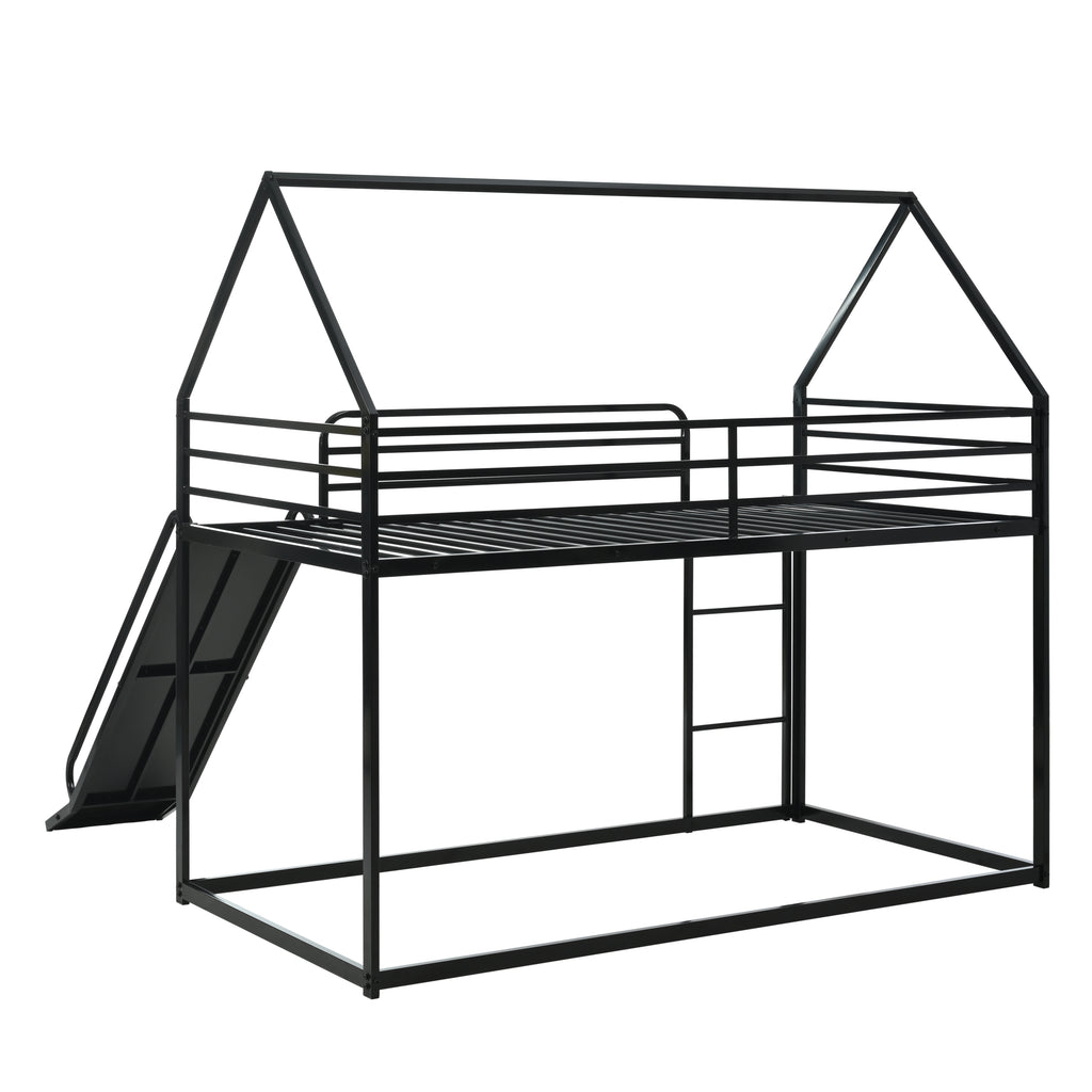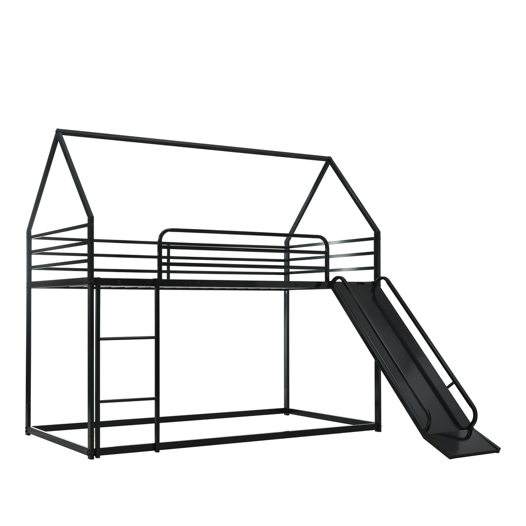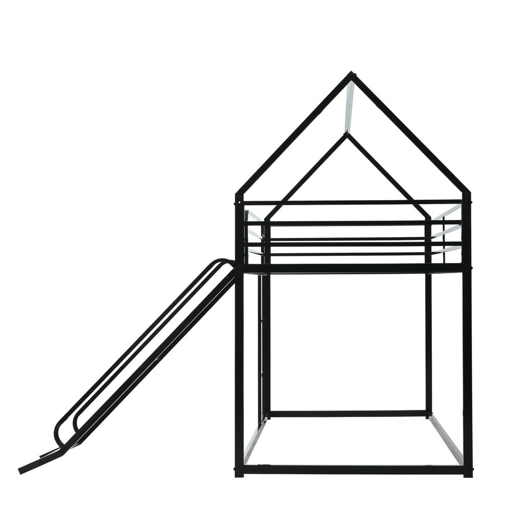 - 【Plenty of storage space】 Twin over twin two layers bunk bed with slider, gives you more happy time when sleeping together with brothers, sisters and/or friends, ladder and slider on both ends of one side of the house bed, it is chasing playtime before sleeping.