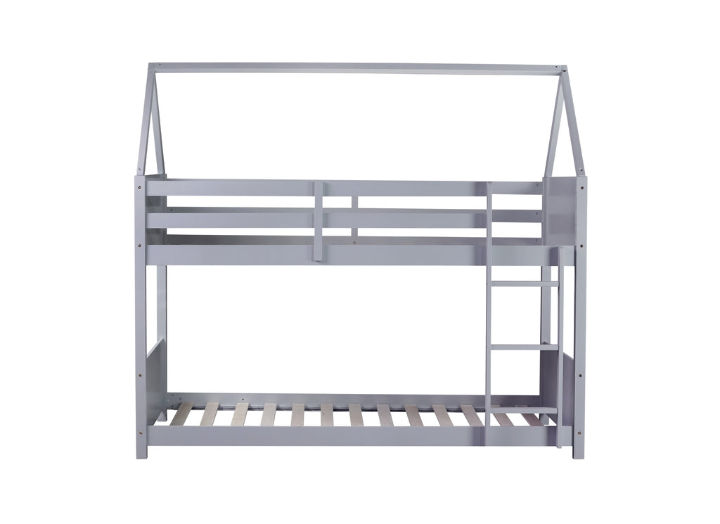 Transform your child's room with our Twin Over Twin House Floor Bunk Bed, featuring a unique roof design for playful dreams and a natural ambiance. Crafted from premium rubber wood with fluted panels, this low-height bunk ensures superior stability, safety, and durability for lasting peace of mind. Its space-saving design and sturdy construction provide both an extra sleeping spot and enhanced play area, making it perfect for any modern home.