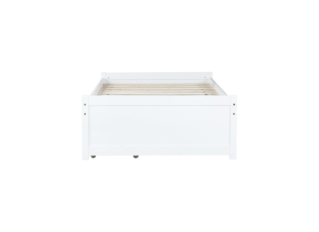 Enjoy this sturdy, concise and space-saving bed. Crafted mainly from durable solid rubber wood, this twin bed of natural beauty features two spacious pull-out drawers underneath for effortless organization of linens, clothes, or toys. Perfect for bedrooms, guest rooms, or kids' rooms. Maximize storage & style – assemble easily and add an elegant touch!