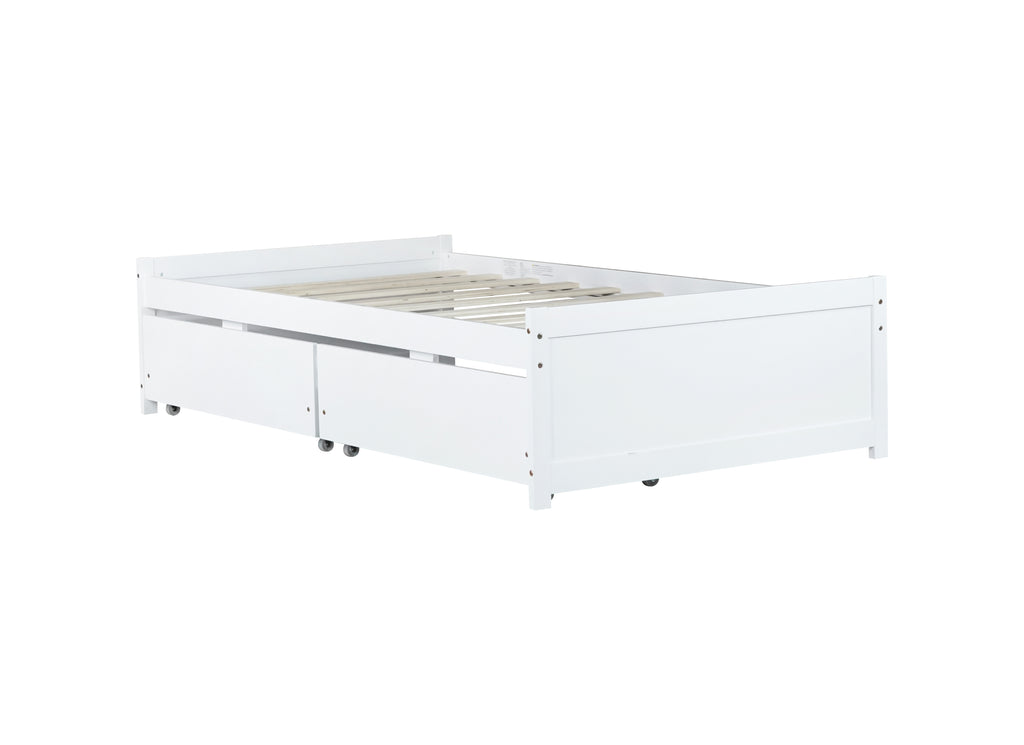 Twin Size Bed with 2 Drawers, Solid Rubber Wood Bed
