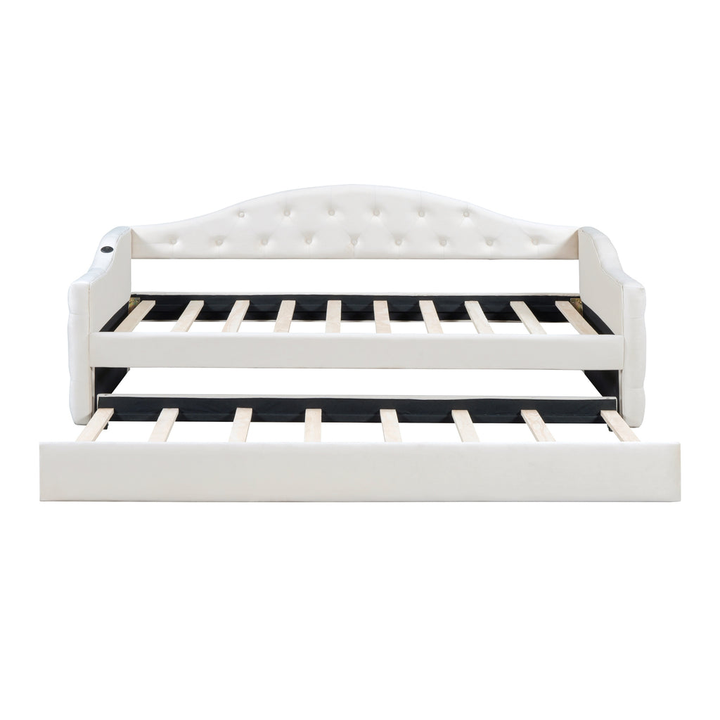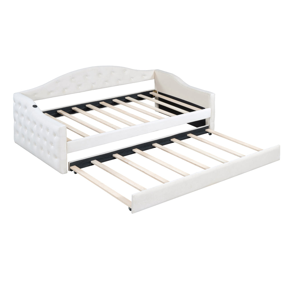 Twin Size Tufted Upholstered Daybed with Trundle ,Velvet Sofabed with USB Charging Ports