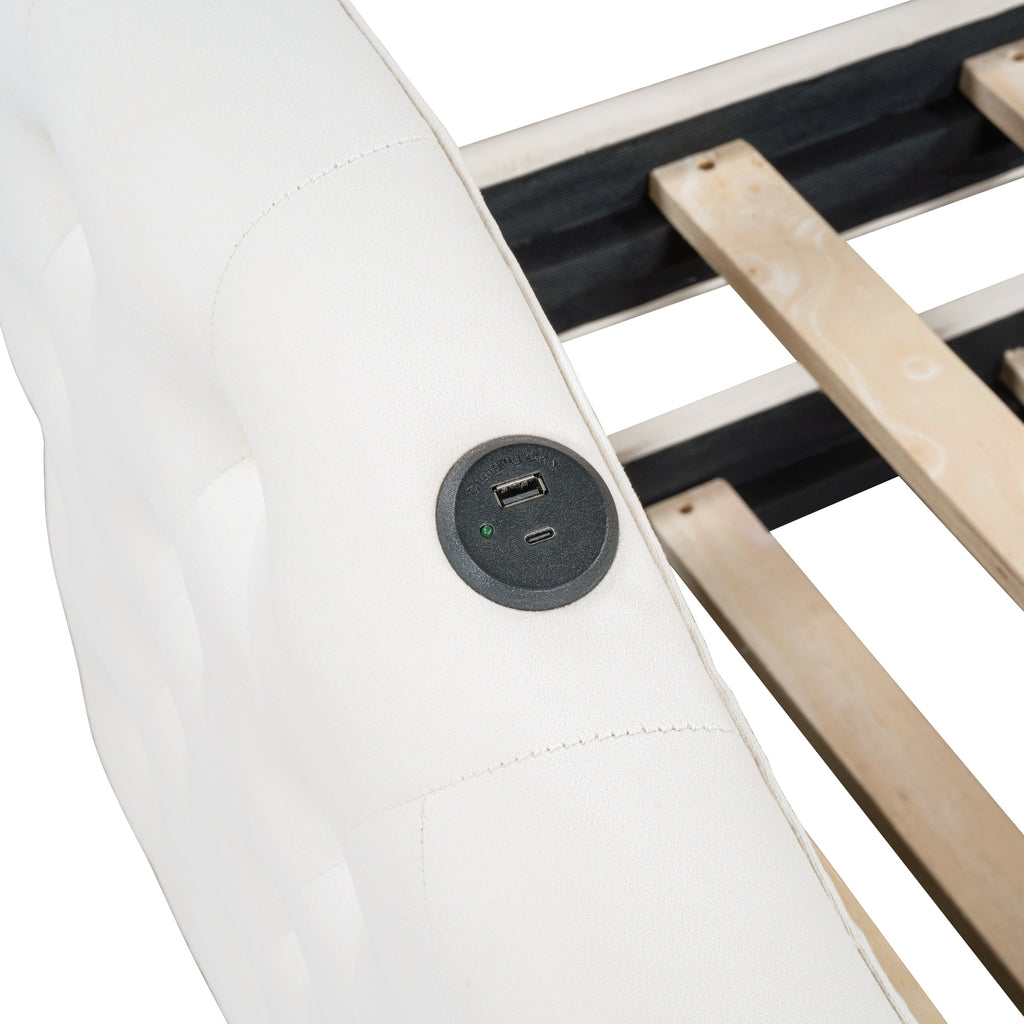 - [Daybed Frame with Charging Station] This dual-purpose daybed accommodates two people comfortably, offering both seating and sleeping functionality. It is equipped with a charging station featuring USB&Type-C ports for added convenience. When you're lying on the daybed and your phone is running out of battery, you can conveniently charge it right away.