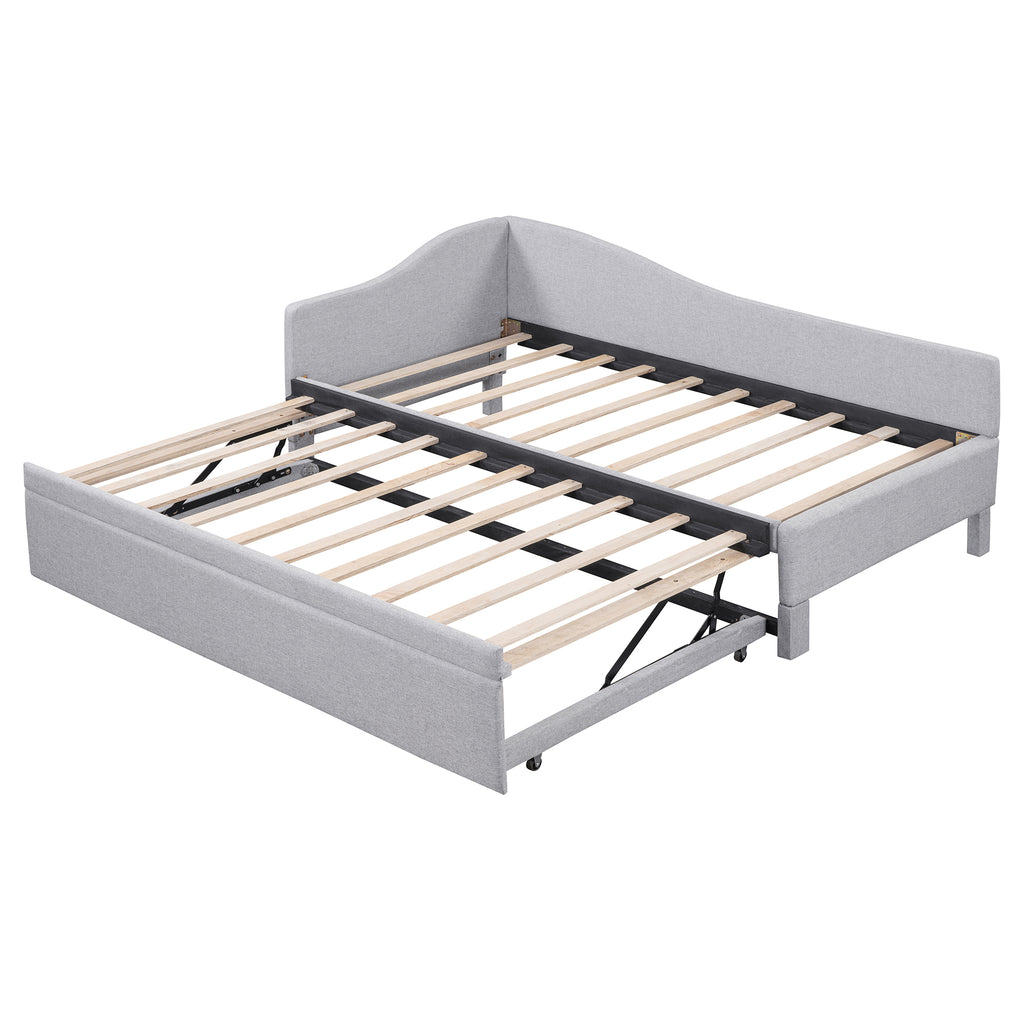 Discover the ultimate in style and versatility with this elegant upholstered twin daybed, featuring an L-shaped backrest and a timeless gray design. Effortlessly expand from twin to an irregular king size, making it perfect for both daily use and accommodating guests with ease. Enjoy a complete sleep solution without a box spring, as this multi-functional daybed fits seamlessly into any room, from living areas to guest rooms.