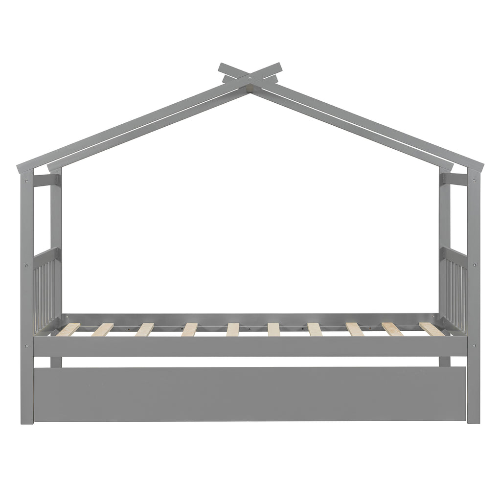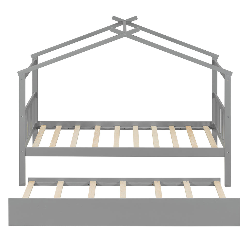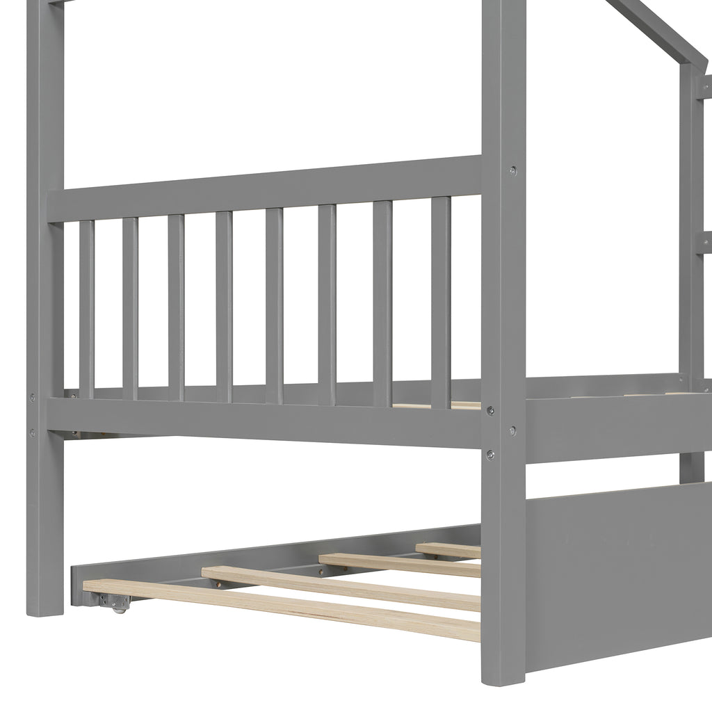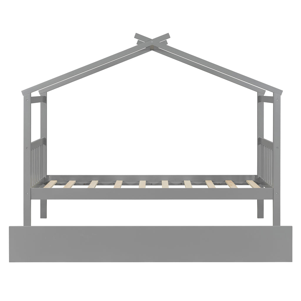 Transform your child's bedroom with this whimsical Twin Size Wooden House Bed, featuring a creative house-shaped design for imaginative play. Crafted from durable solid pine wood, it includes a convenient pull-out twin trundle, perfect for sleepovers and maximizing space. This sturdy platform bed offers exceptional quality and charming style, making it a dream addition to any kids' room.