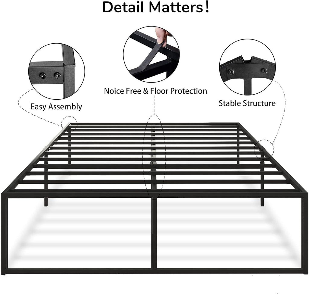 - Sturdy Construction and Noise Reduction Design: Bed frame is constructed of heavy duty metal frame for large load-bearing capacity, sturdy and durable, no shake, no squeak, provides a quiet and comfortable sleep all night long
