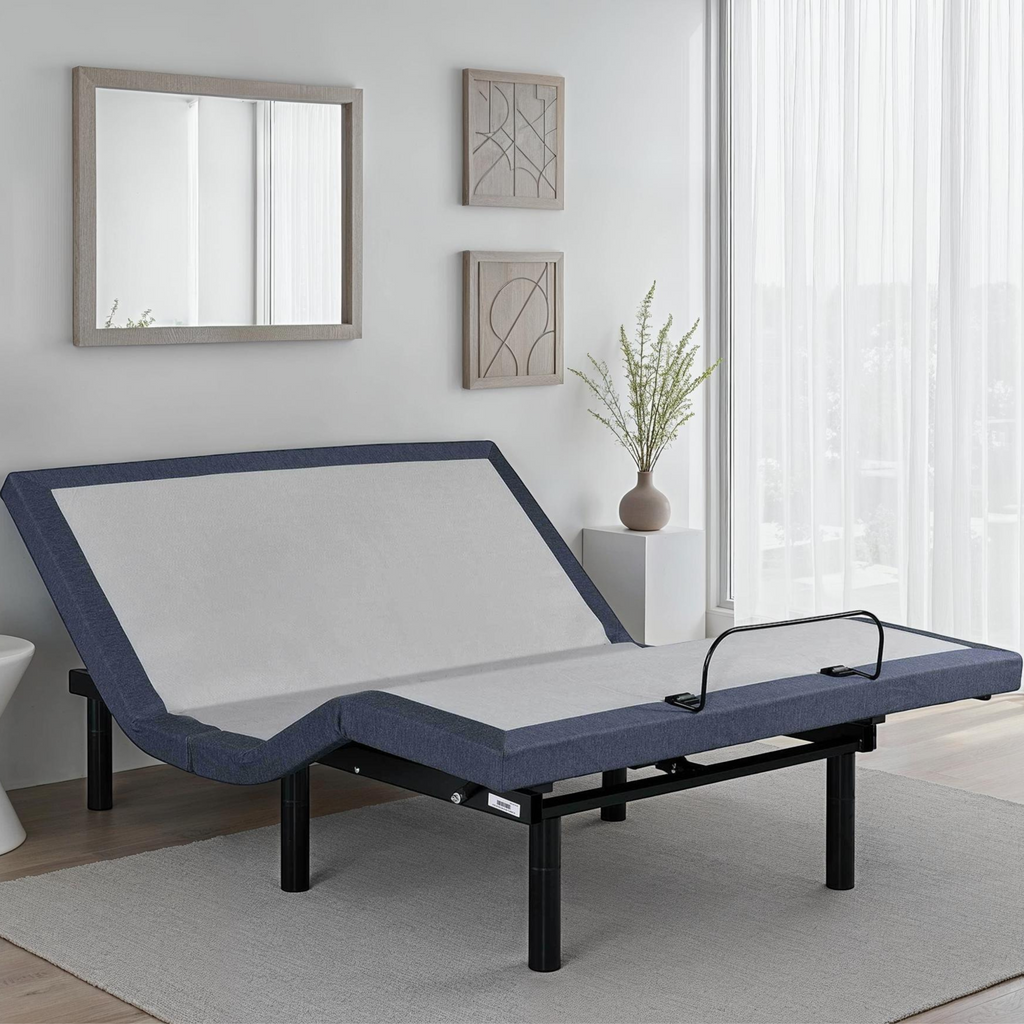 Experience ultimate comfort with our Blue-gray Twin XL Adjustable Bed Base, featuring head and foot position adjustments for personalized sleep. Enjoy advanced functions like a programmable memory position, one-touch return to flat, anti-snore, and a relaxing body massage. Enhance your sleep quality and transform your bedroom into a sanctuary of ergonomic support and convenience.