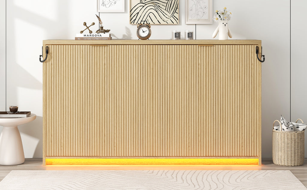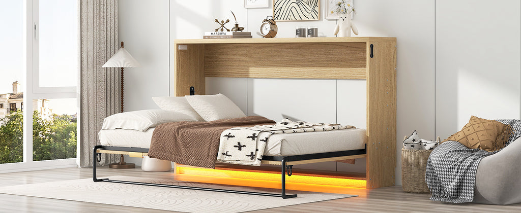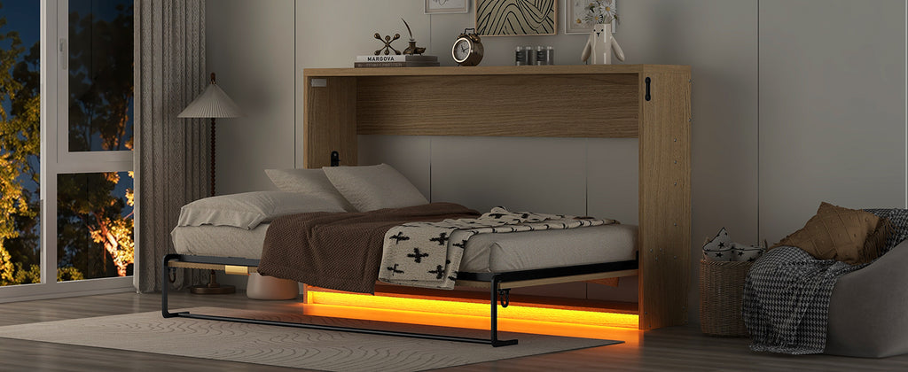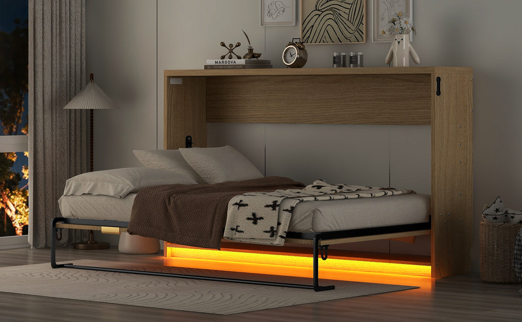 Maximize your living space with this innovative Twin XL Murphy Bed, transforming into a stylish cabinet with ease. Featuring integrated LED lighting for a cozy ambiance, its clever design securely accommodates your mattress and bedding. Enjoy durable metal construction and a space-saving solution perfect for any modern home.