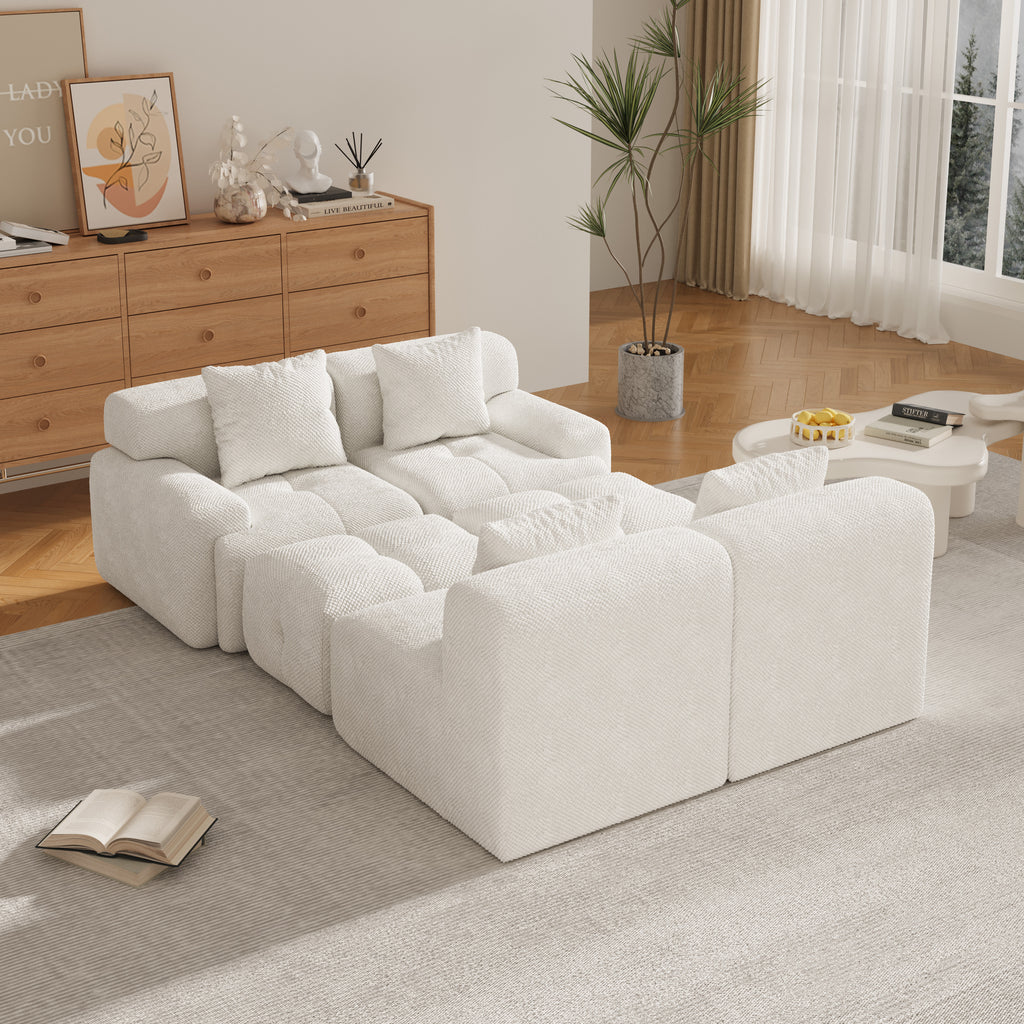 - 【Flexible Modular & Convertible Layout】Comes with a 4-seat sofa and 2 movable ottomans, allowing you to easily switch between U-shaped, L-shaped, or sleeper sofa configurations. Perfect for adapting to your space and lifestyle needs.