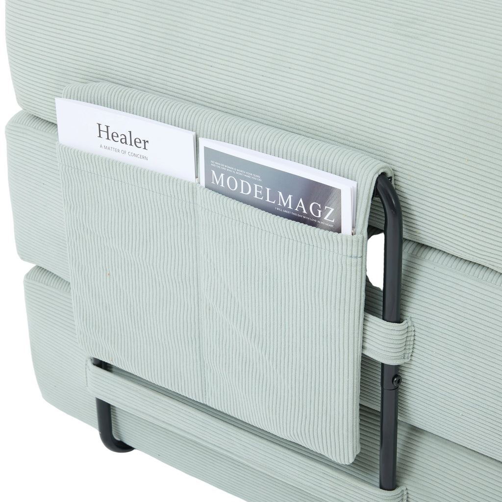 - A storage pocket is attached to the frame, keeping magazines, remote controls, or tablets within easy reach. This keeps your living area tidy and functional.