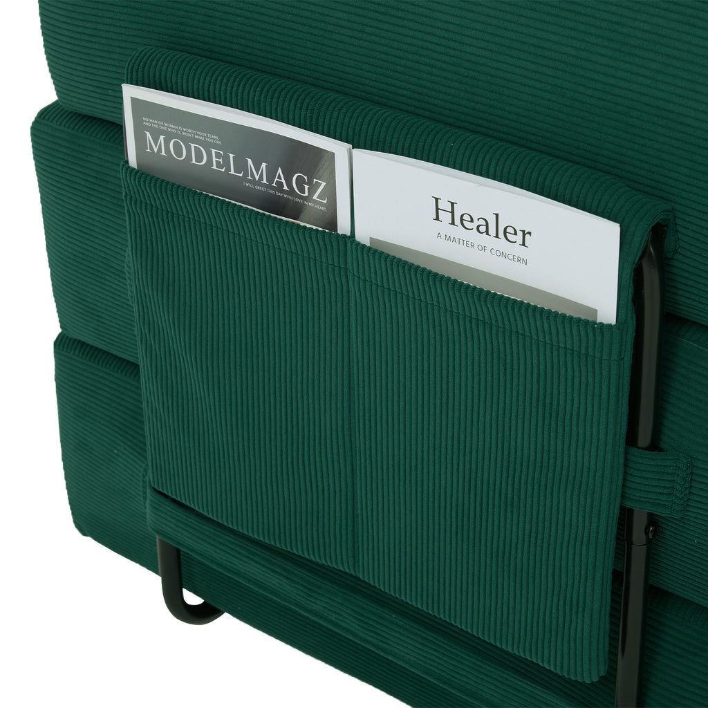 - A storage pocket is attached to the frame, keeping magazines, remote controls, or tablets within easy reach. This keeps your living area tidy and functional.