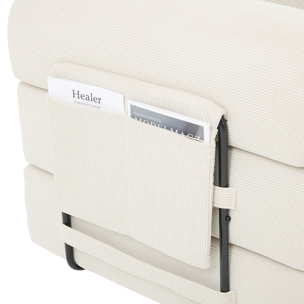 - A storage pocket is attached to the frame, keeping magazines, remote controls, or tablets within easy reach. This keeps your living area tidy and functional.