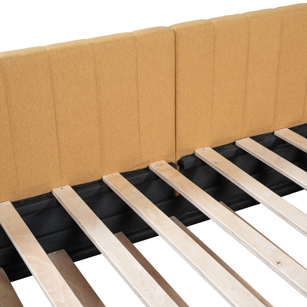 Discover unparalleled comfort and style with our classic yellow linen upholstered daybed, featuring a charming semi-closed design perfect for any modern home. Engineered for enduring stability with a robust wood frame and slats, this twin daybed eliminates the need for a box spring. Maximize your living space effortlessly with the integrated pull-out trundle, ideal for guests and sleepovers.