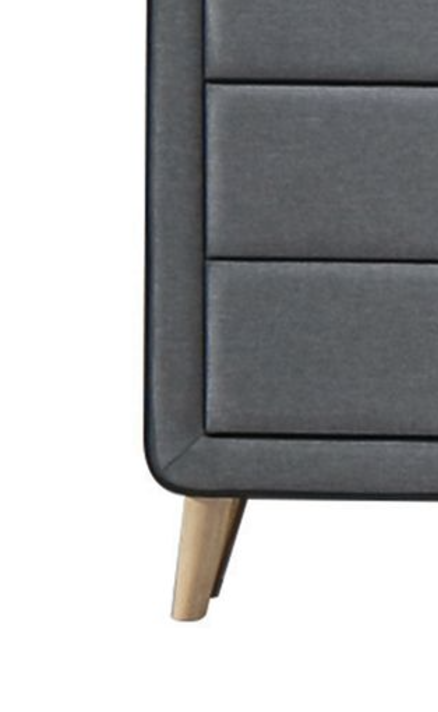- Resting on beautifully tapered wooden legs with a natural finish, the chest exudes a sense of warmth and contemporary charm.