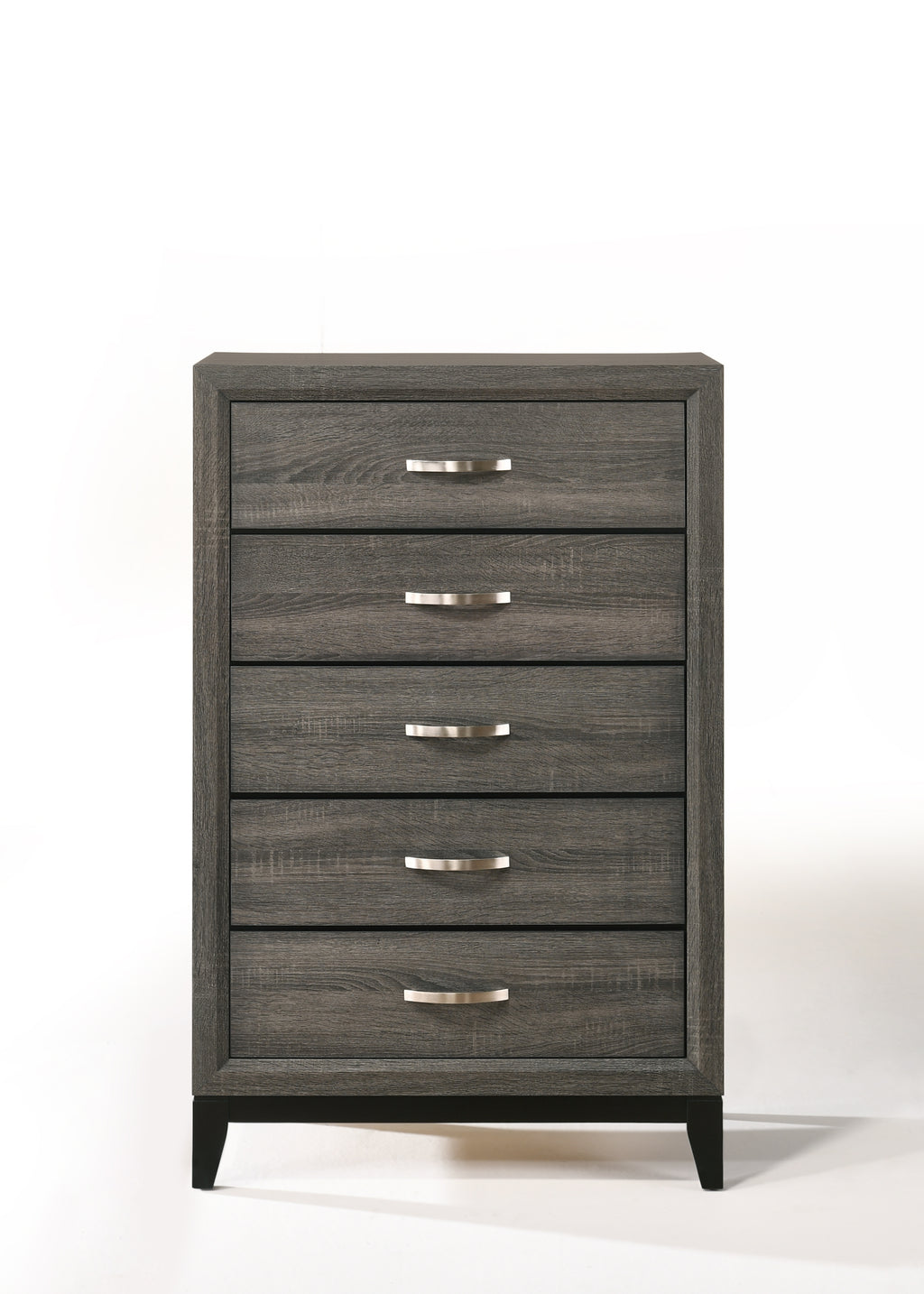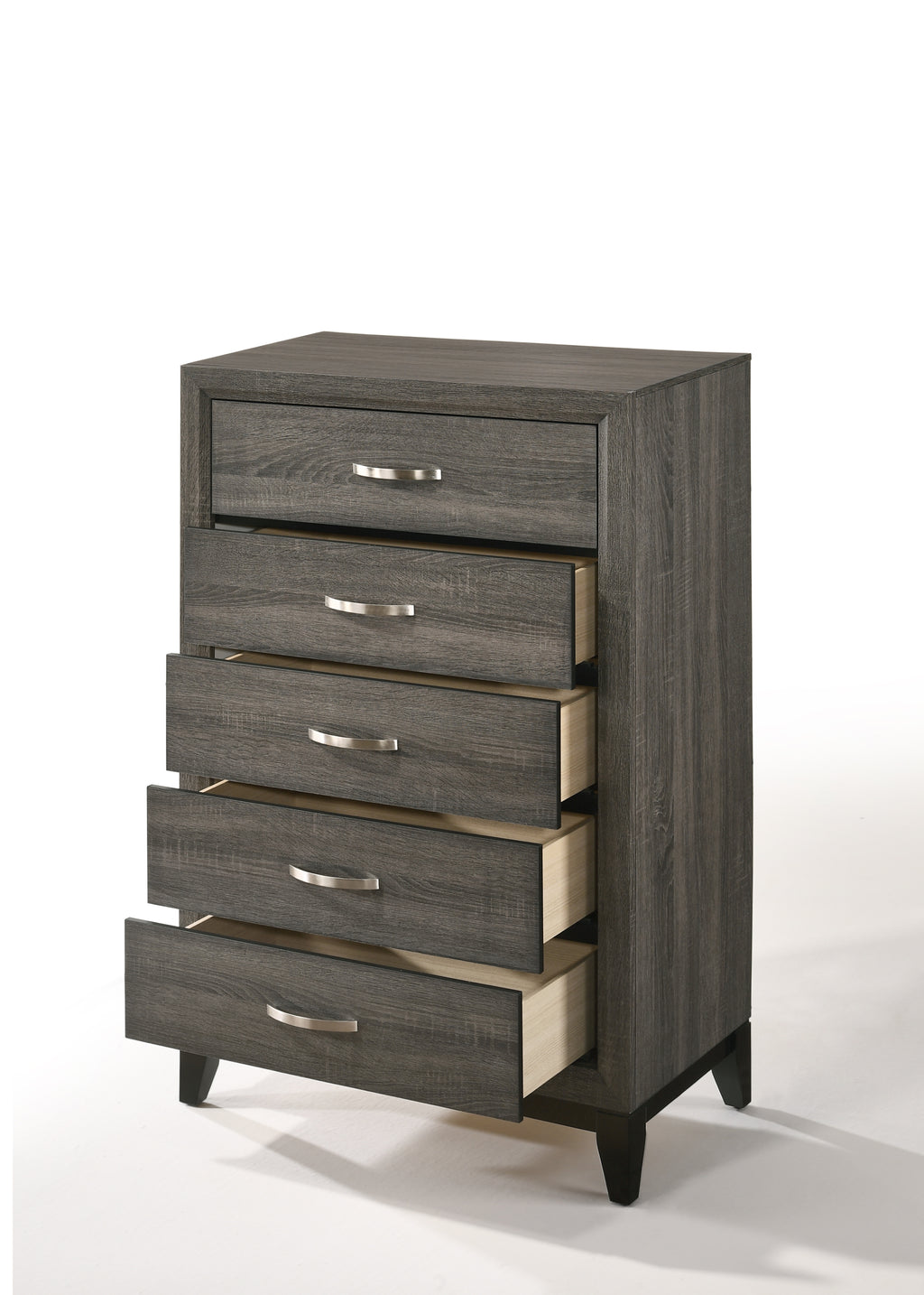 - This chest features five spacious drawers, each designed with a center metal glide system (3/4 extension) for smooth operation.