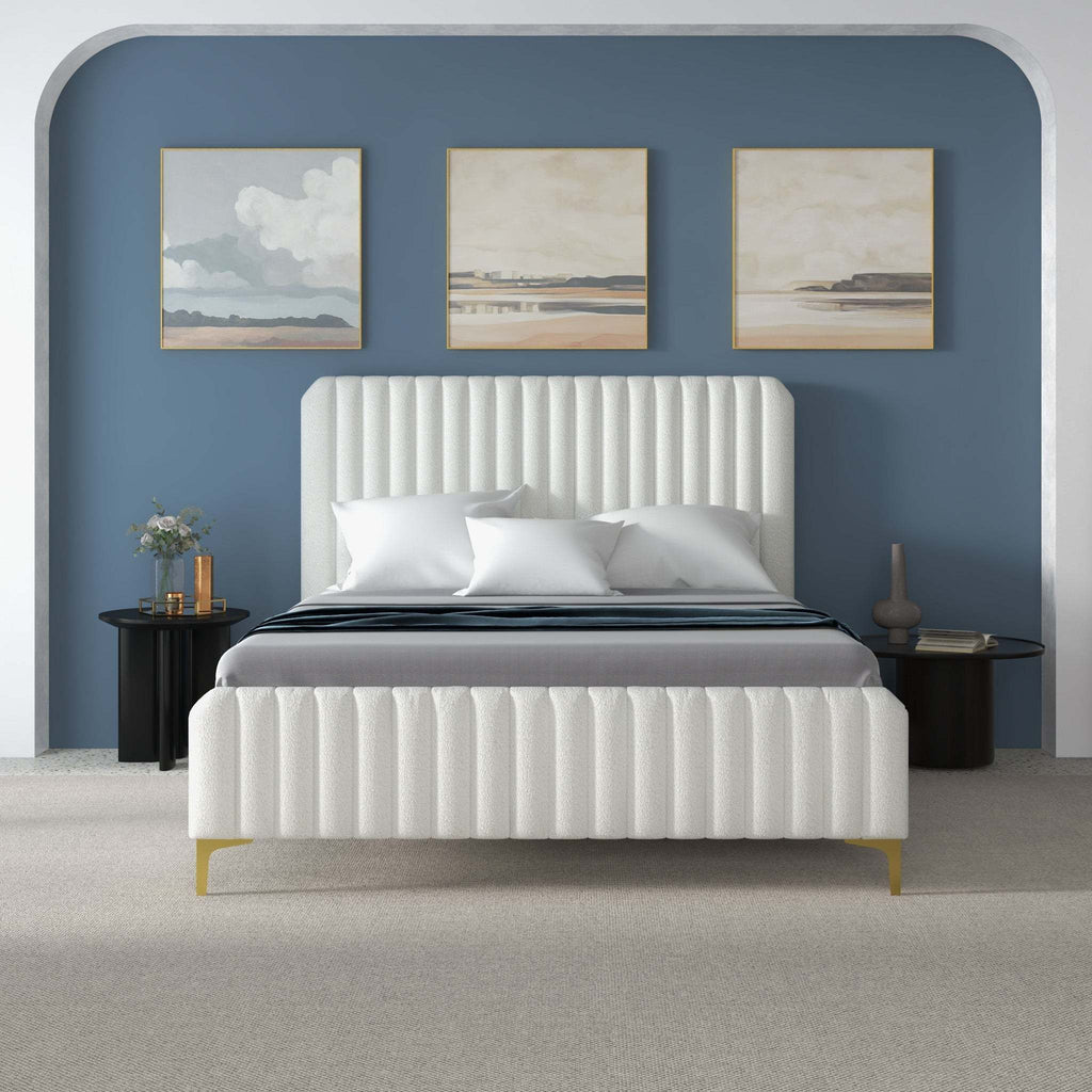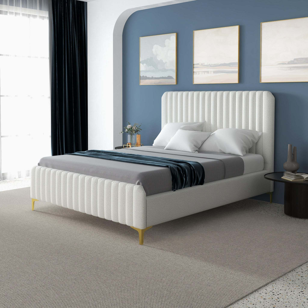- Drift off to sleep in magnificent fashion with the refined elegance of the modern platform bed. These chic platform bed pieces consist of a solid wood frame padded with foam and upholstered in boucle for a truly luxurious embrace.