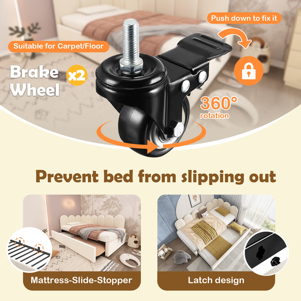 - 【PEACE-ASSURING QUALITY】 The sofa bed is equipped with hardware clasps on both sides to secure the bed when not in use and keep your bedroom tidy. The slatted frame provides a solid sleeping experience and the pull-out bed is equipped with 4 casters, which have brakes for added safety. The pull-out bed comes with two stoppers to prevent the mattress from shifting.