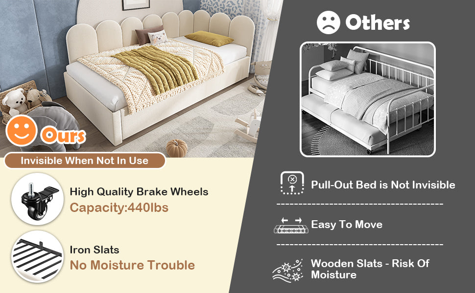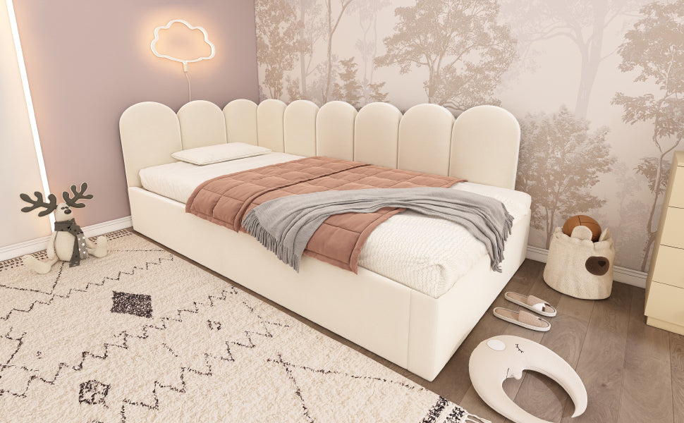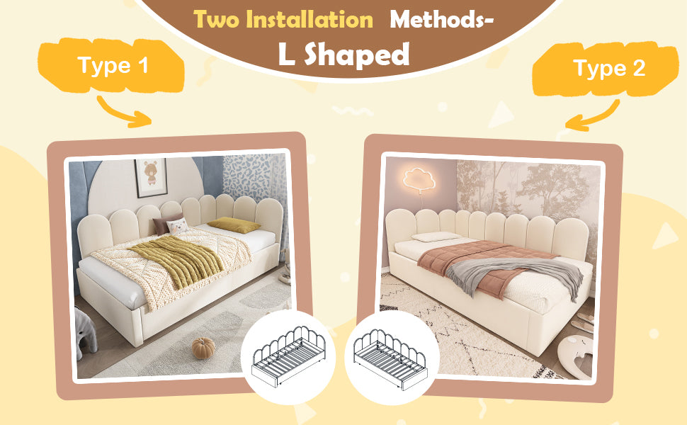 - 【SMALL SPACE-FRIENDLY DESIGN】 The unique shape of this daybed creates a kid-friendly atmosphere. The bed frame is L-shaped with interchangeable side panels to accommodate different room configurations, making it ideal for small spaces or flats and guest rooms.