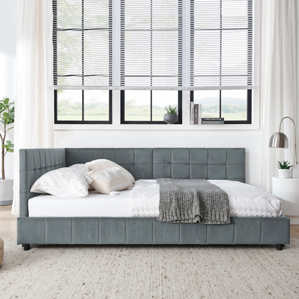 - 【Mid-Century Full Daybed】This full size daybed is designed with a clean silhouette and a hue of elegance.it upholstered in carefully-selected velvet fabric which can perfectly blend in with any color scheme and existing furniture in your bedroom or living room.