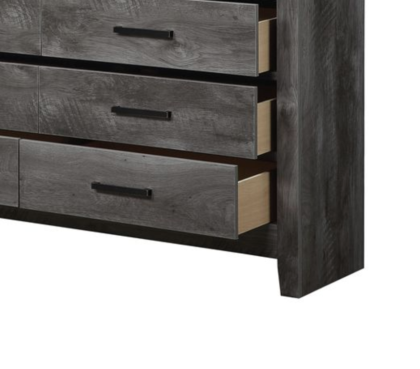 - The dresser is finished with sleek, single pull-handles, adding a modern touch to its design, making it both functional and visually appealing in any bedroom.