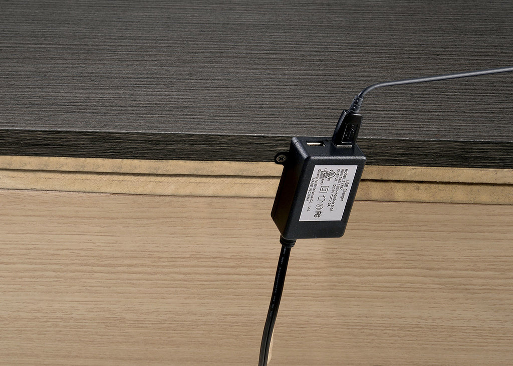 Offering a clean modern design and a no frills approach to ornamentation, this bedroom collection is your key to a sleek bedroom decor. The smooth gray finish keeps the collection grounded in sophistication. Chrome trim highlights add a spark of flash and vibrancy, accentuating the rigid angles and lines of the design. A shelf runs along the top of the headboard, allowing you to decorate with votive candles or something for the built in LED strip lighting to exhibit.