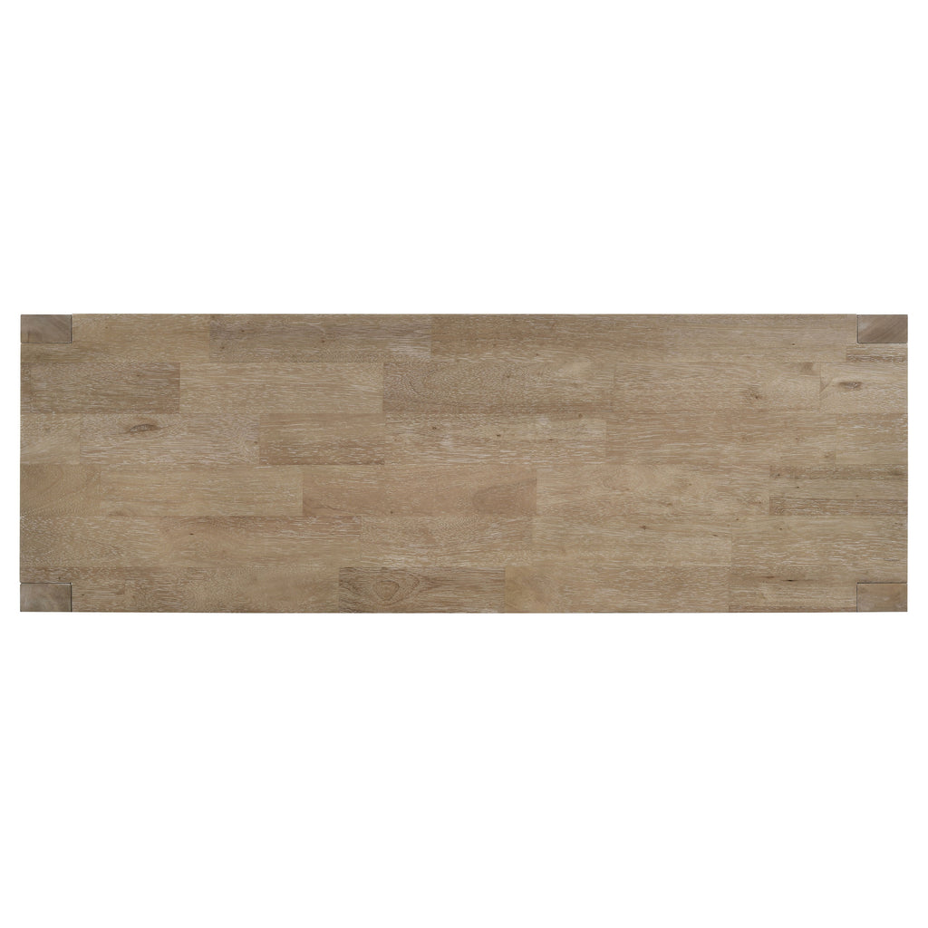 - Light brown wood finish with a wire-brushed effect adds depth and a rustic charm to the design