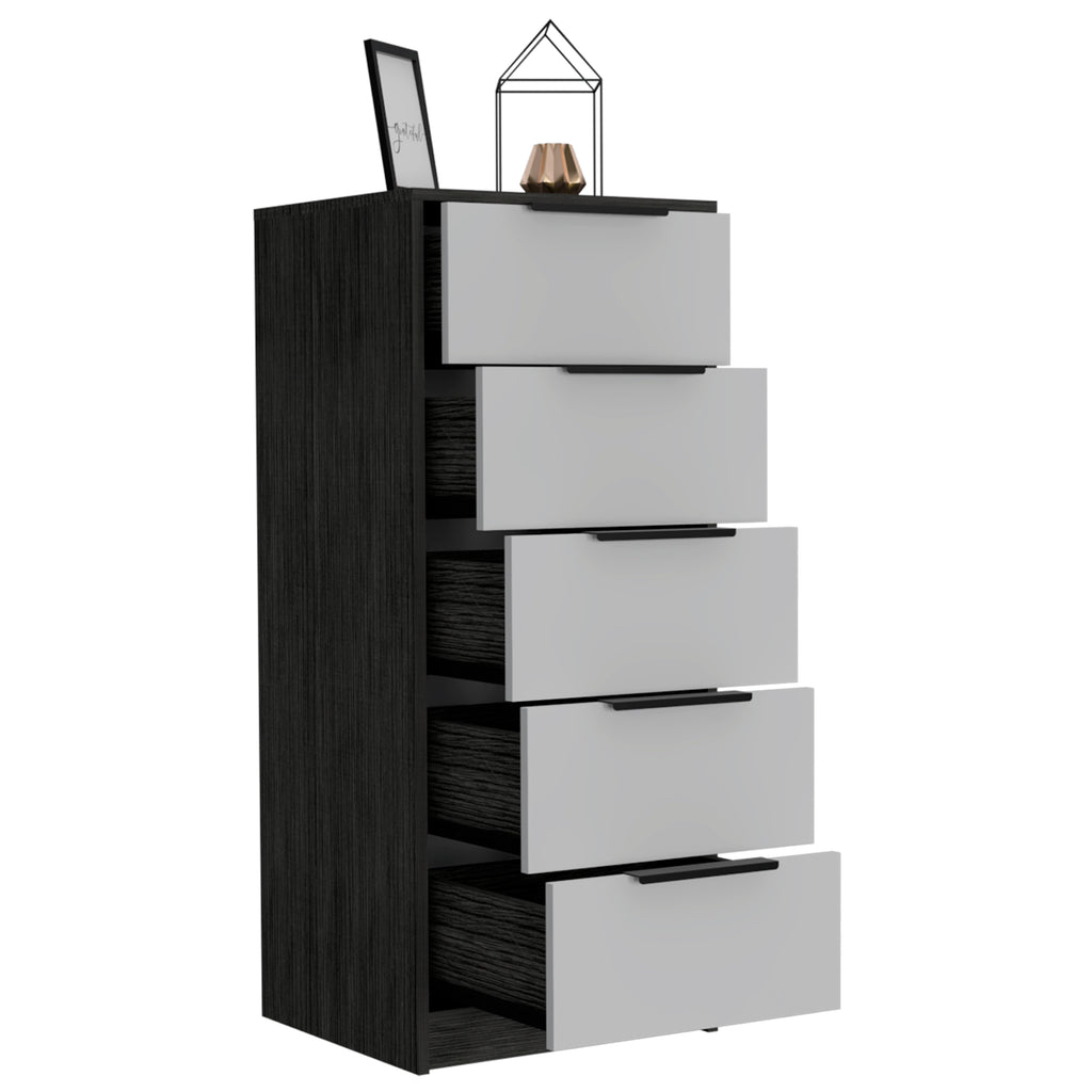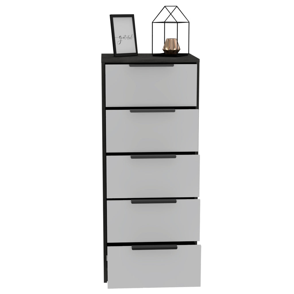 FM FURNITURE Washington Five Drawer Dresser ,White / Light Oak -Bedroom