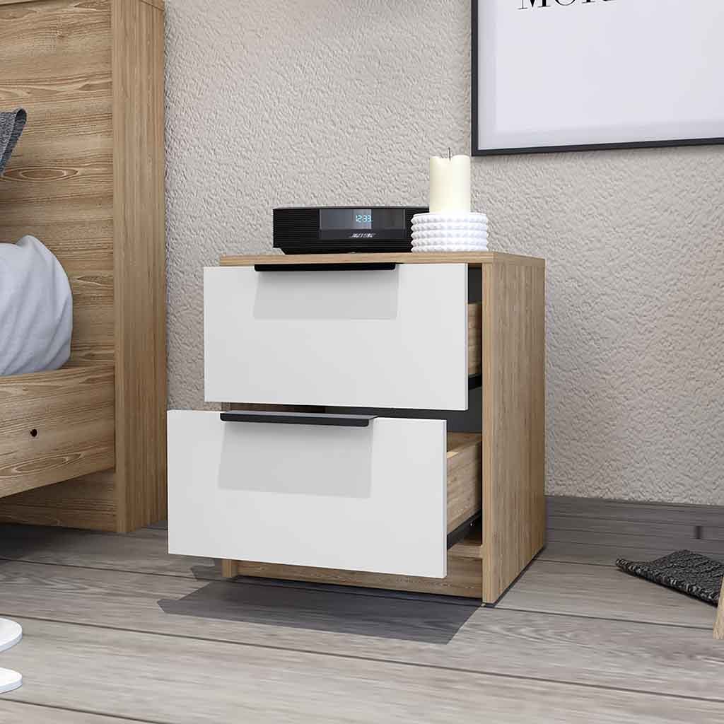 FM FURNITURE Washington Nightstand, Two Large Drawers ,White / Light Oak