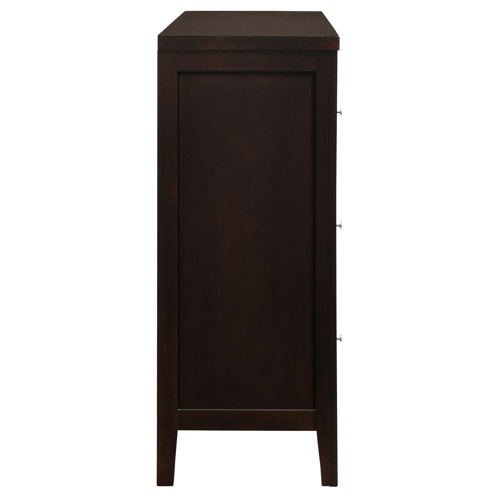 This stylish dresser adds character with a straightforward form and six generous drawers. A rich, cozy vibe meets practical storage, providing ample space for sweaters, extra linens, and the things that never seem to find a home.
