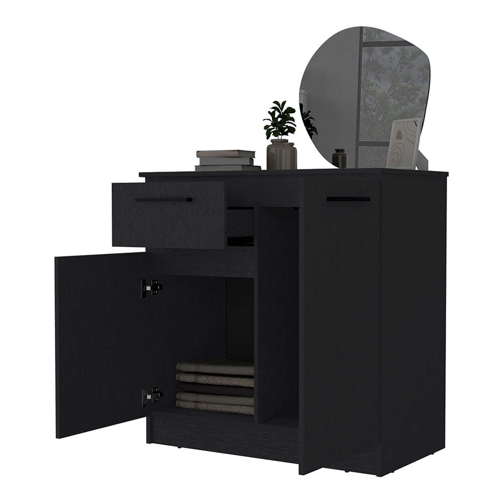 The Dresser with 1-Drawer and 2-Door combines style and practicality, complementing any decor with its white or wenge manufactured wood finish. Its superior top is perfect for displaying decor items like photos, plants, or candles, adding a personal touch to your bedroom or guest room.