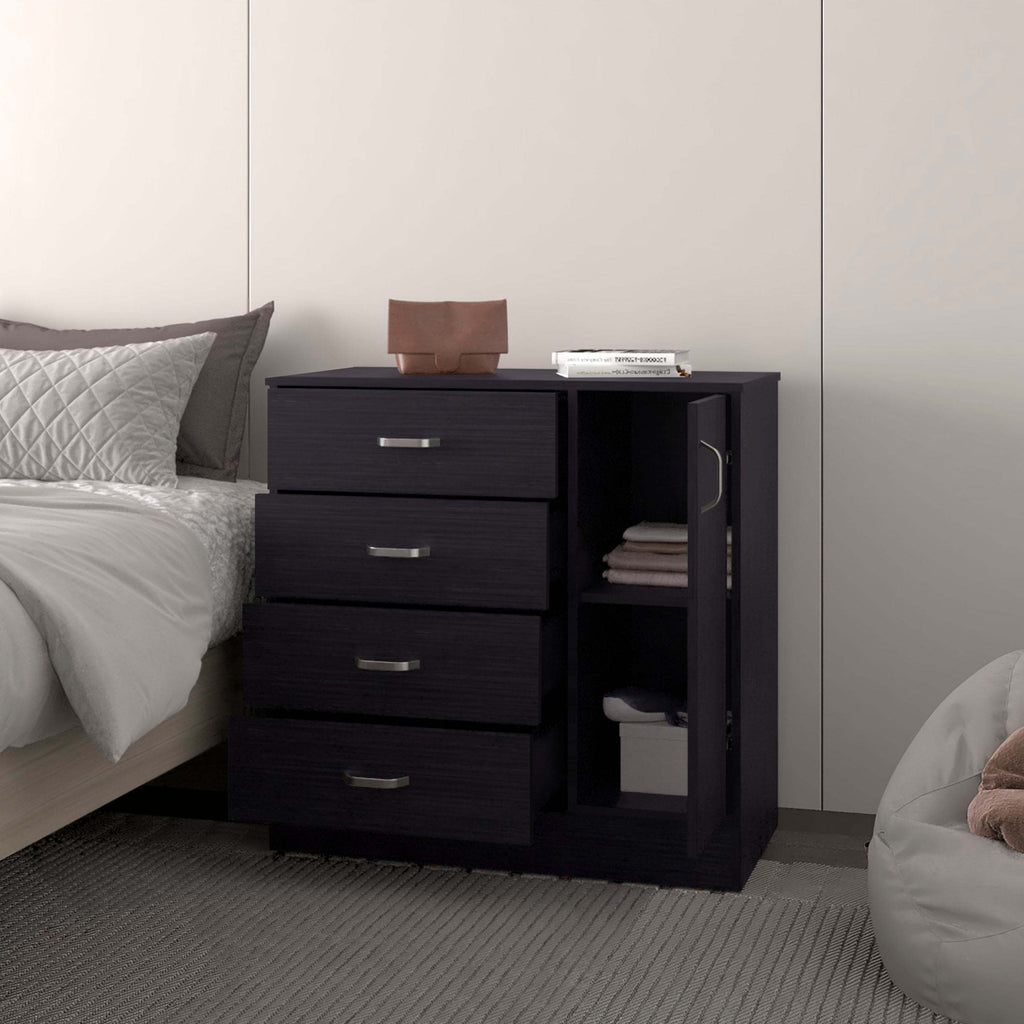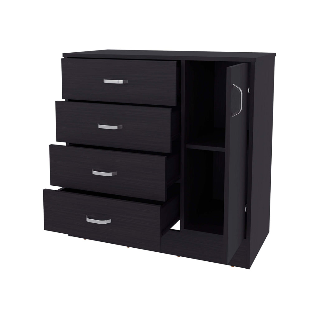 - 4-Drawer unit offers ample storage space with four spacious drawers designed for organized and versatile use