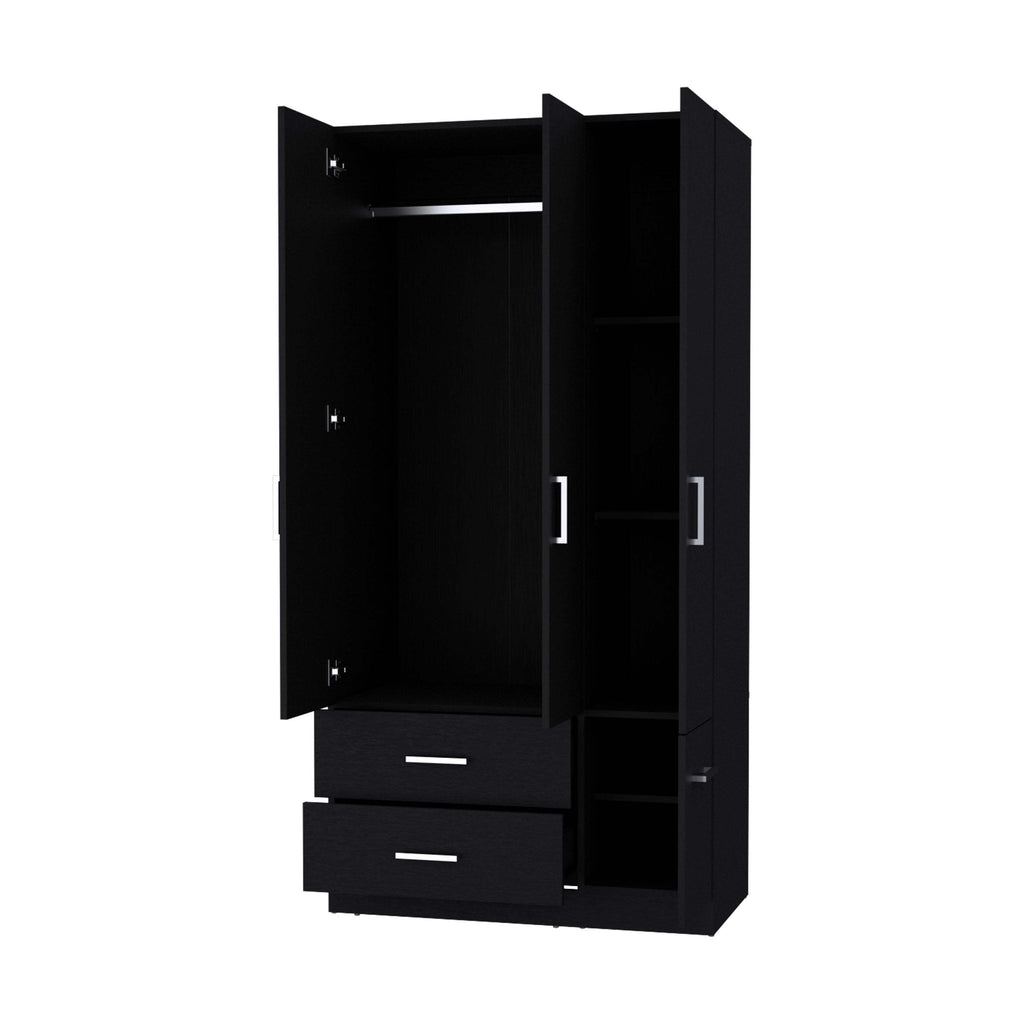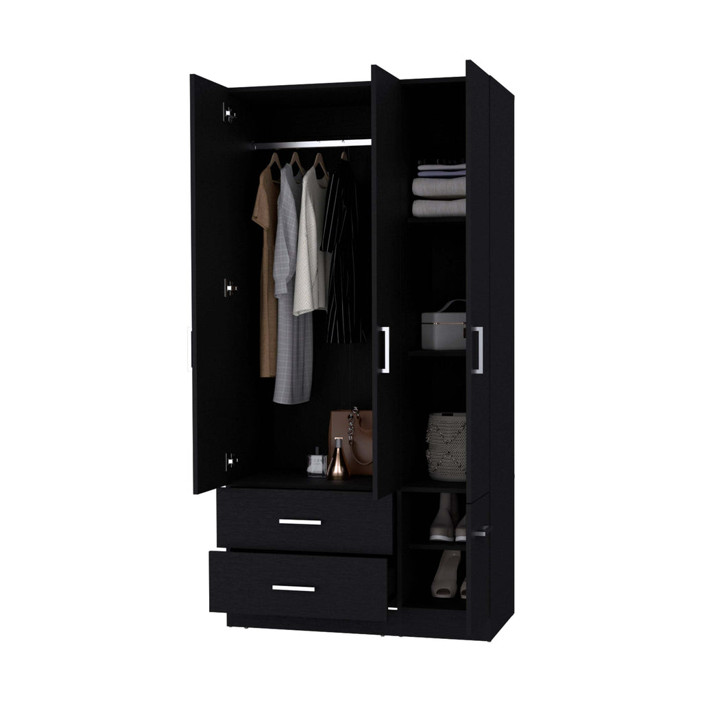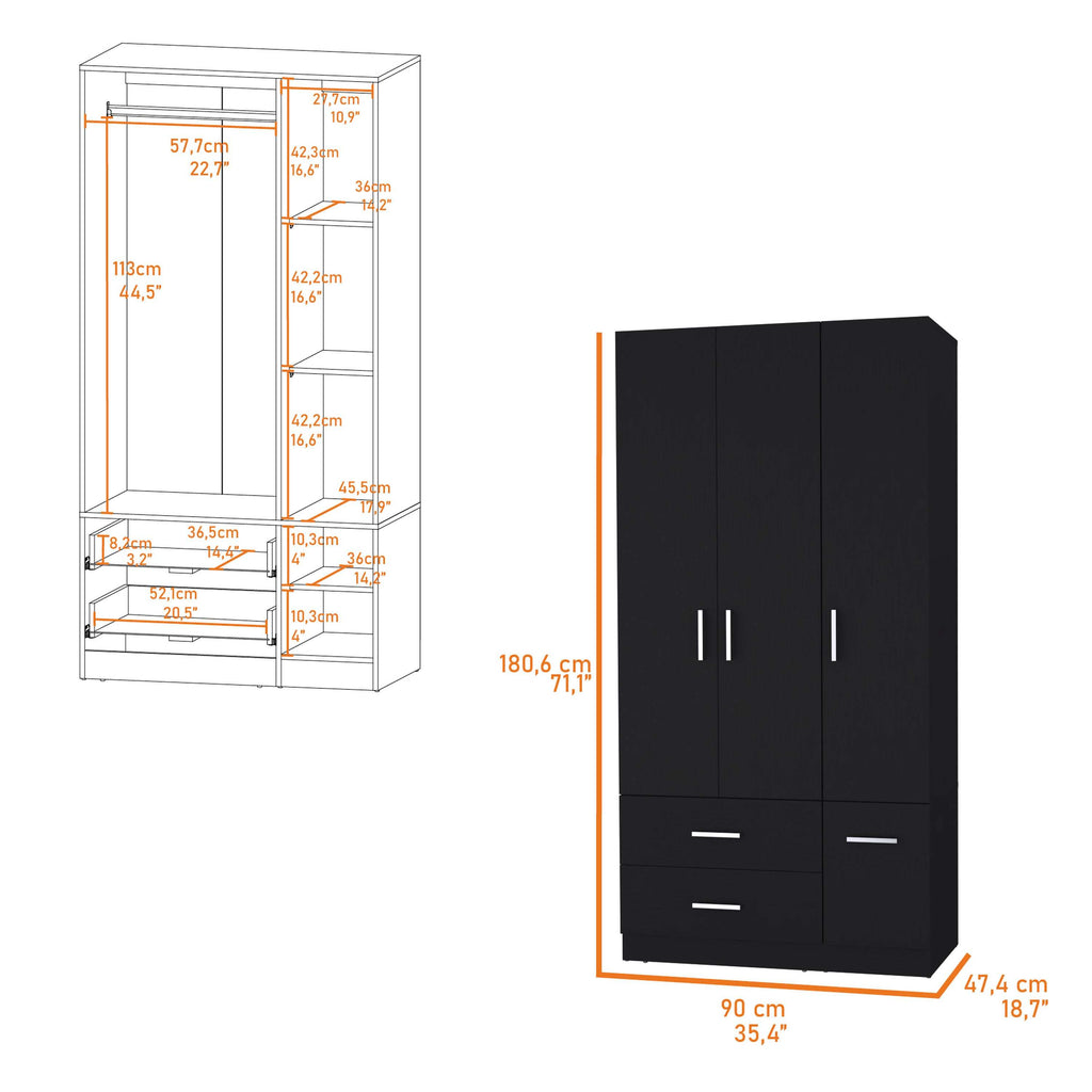 This versatile wardrobe provides extensive storage space for various clothing items and accessories, making it ideal for hanging both adult and children's clothes to keep them wrinkle-free and organized. Additionally, it offers extra storage for smaller items such as underwear, socks, and accessories, accommodating a wide range of clothing needs for the entire family.