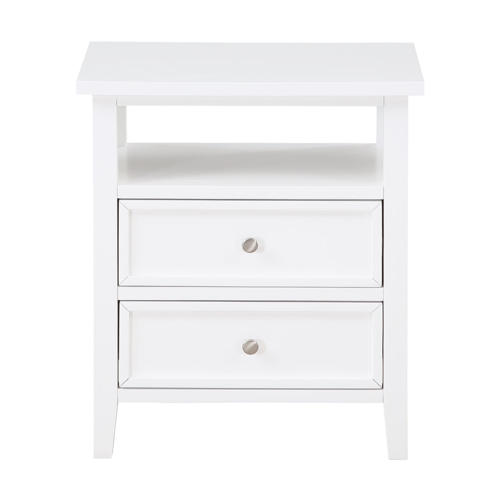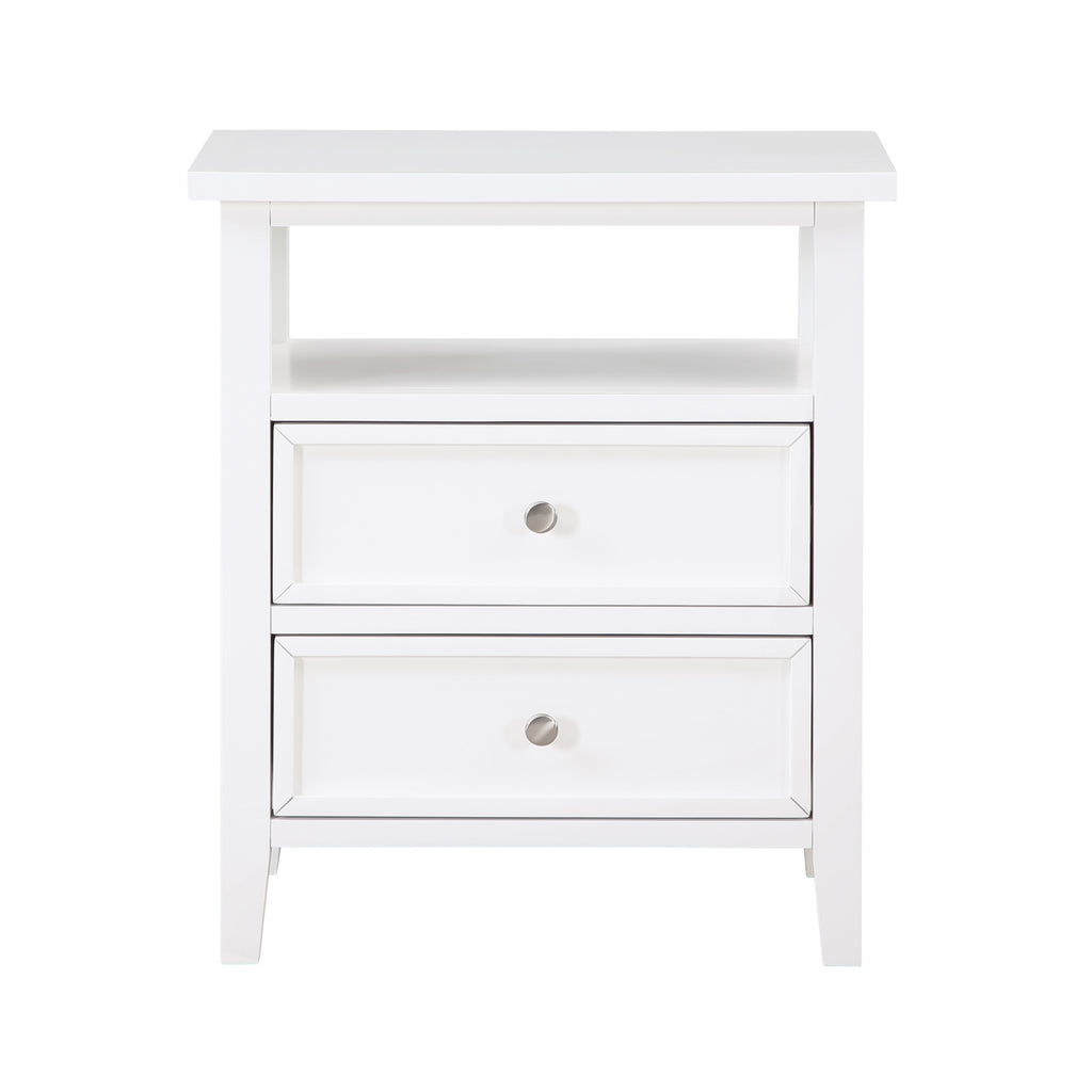 - Introducing the Weston 2-drawer Nightstand, with nickel finish knobs and French dovetail drawer joinery. Metal ball bearing glides, the two spacious drawers offer both functionality and ease of use. The open shelf provides additional storage, allowing you to conveniently organize your belongings.