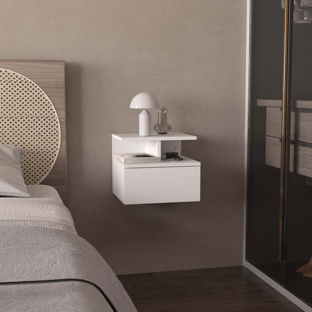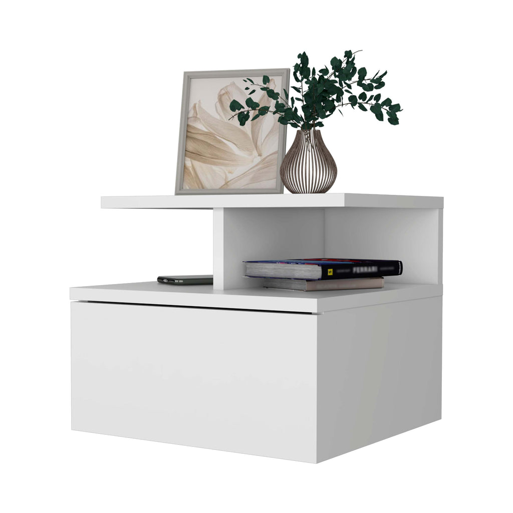 Floating nightstand is a sleek and space-saving storage solution designed to elevate your bedroom decor. With effortless wall-mounting capabilities and a spacious drawer for bedside essentials, it's the perfect addition to small spaces, besides the 2-tier shelf offers additional storage for keeping your belongings neatly organized and within reach.