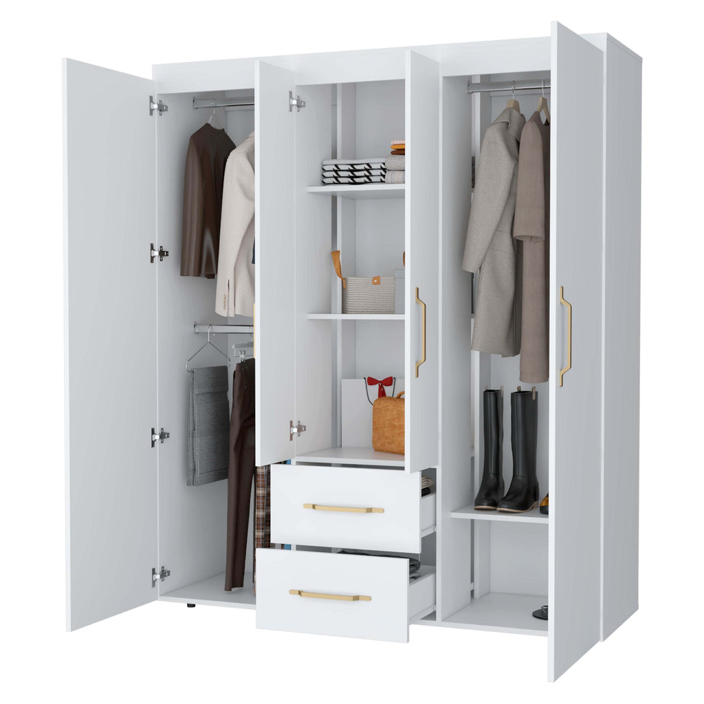 - Two side doors feature hanging rods, ideal for organizing clothing efficiently