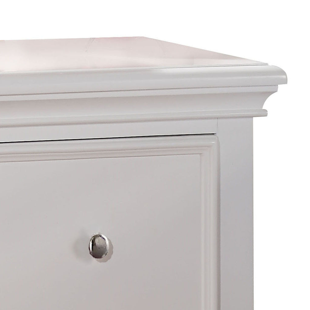 This transitional nightstand seamlessly blends traditional and contemporary elements, featuring two drawers that offer convenient bedside storage. The white finish creates a bright, inviting atmosphere, while metal nickel knobs add a stylish accent and ensure easy access to your essentials.