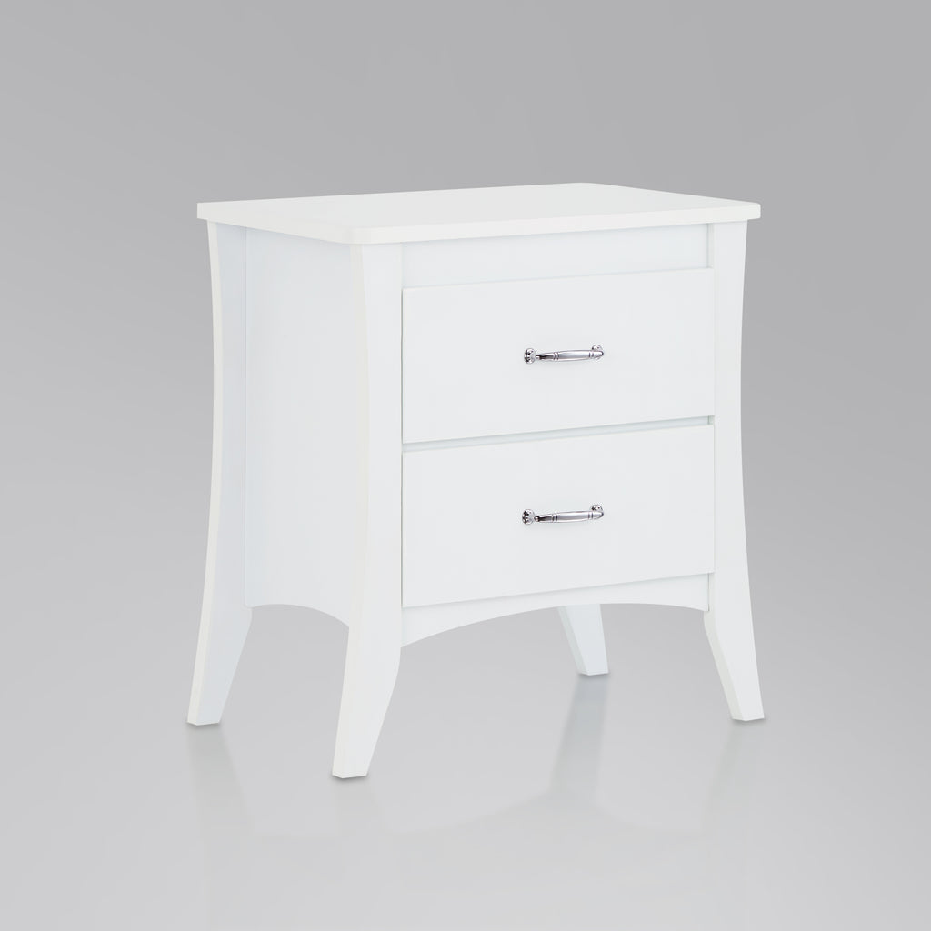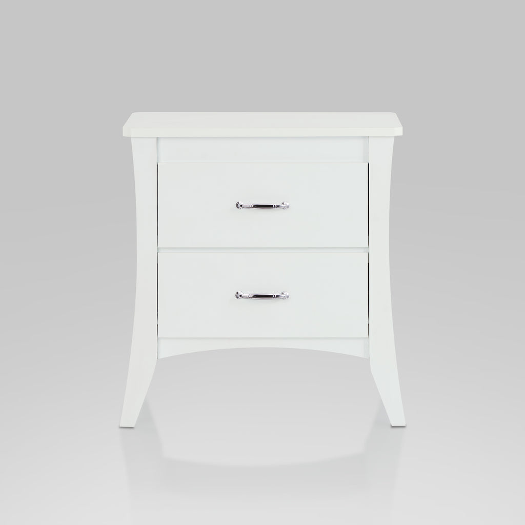 Enhance your bedroom with our elegant rectangular nightstand, featuring a sturdy wooden case-frame and stylish tapered legs. Offering practical storage with two spacious drawers, each equipped with smooth side metal glides, this nightstand combines functionality with timeless design.