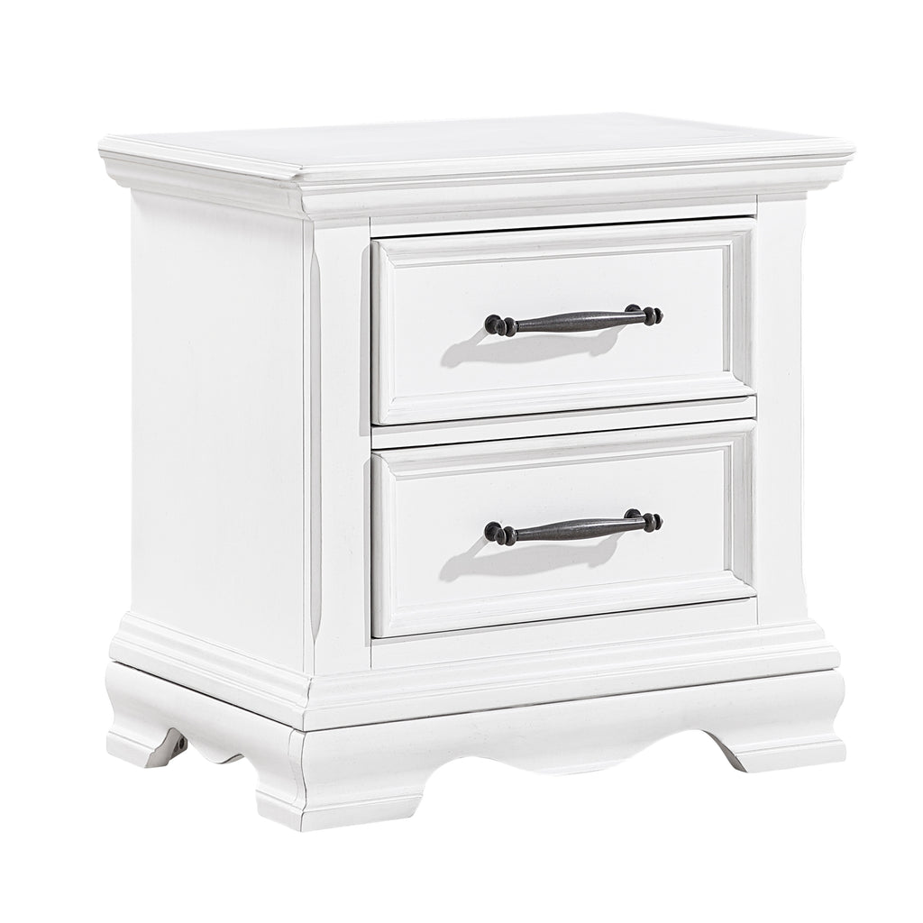 Add a touch of timeless elegance and practical storage to your bedside with this charming White Wood 2-Drawer Nightstand. Crafted from a durable blend of wood and engineered wood, this nightstand boasts a beautiful, crisp white finish that brightens any bedroom décor. Featuring two spacious dovetail drawers, each equipped with smooth ball-bearing glides, it offers effortless access to your essentials, while the stylish black nickel-tone bar pulls provide a striking contrast. Perfect for keeping your nighttime necessities organized and within reach, this classic bedside table combines refined aesthetics with reliable functionality.
