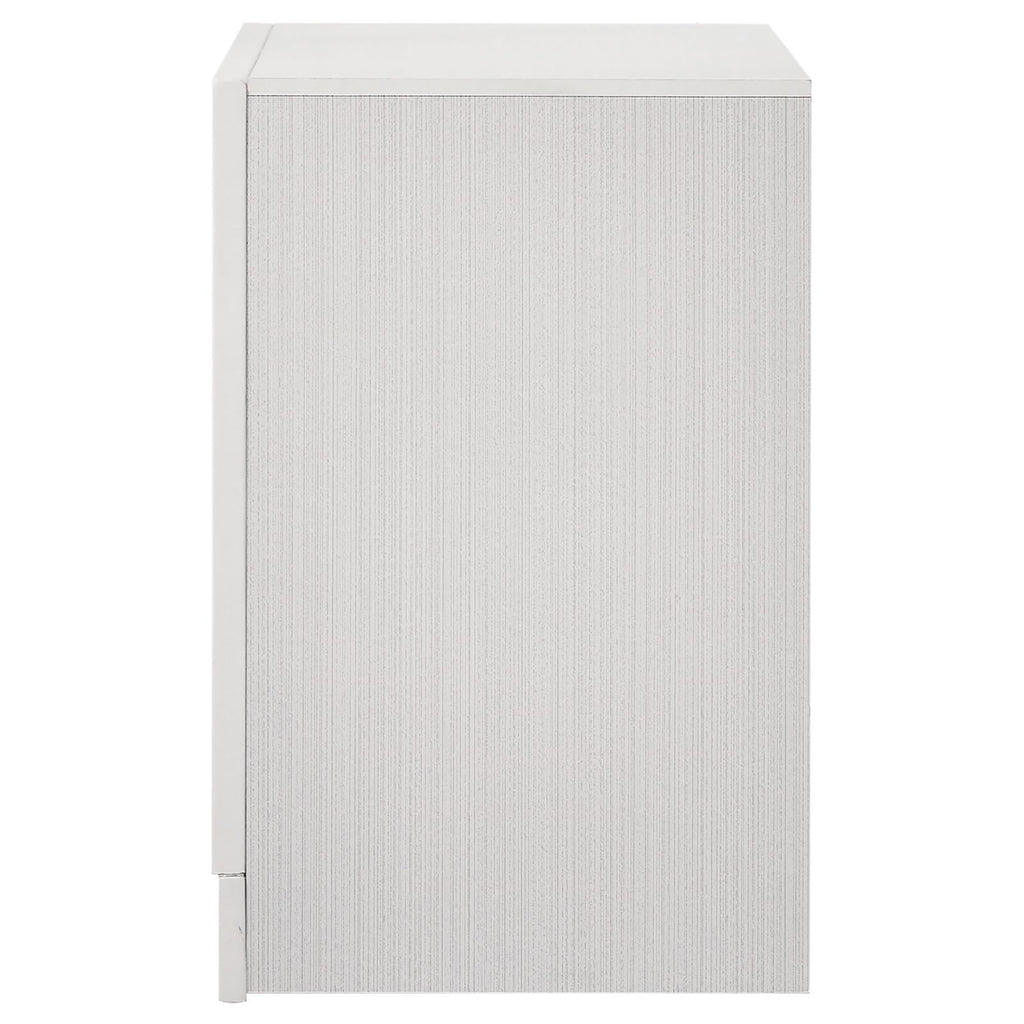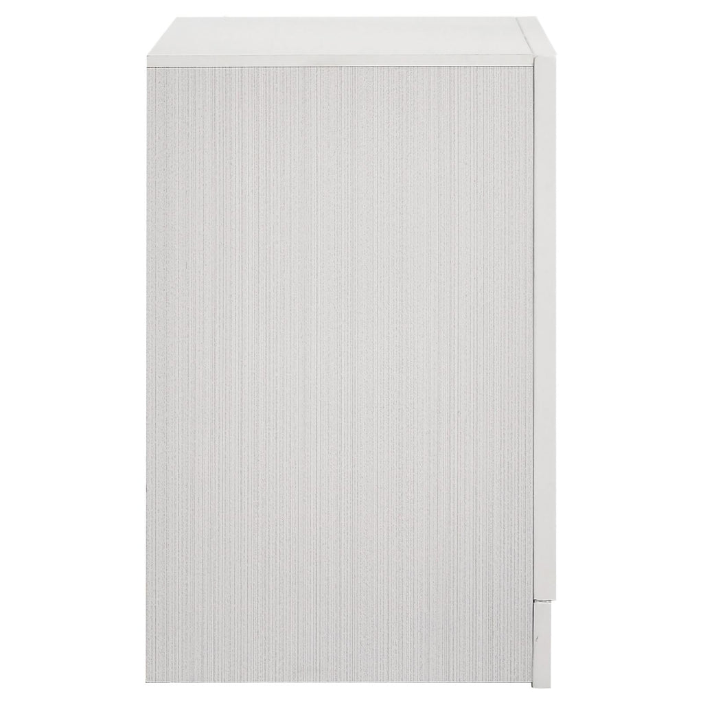 This glitzy nightstand has two drawers for convenient, close-at-hand storage, and also comes equipped with a secret section to stash your jewelry. Accents like embossed silver drawer pulls and a metallic textured finish bring on the glam.