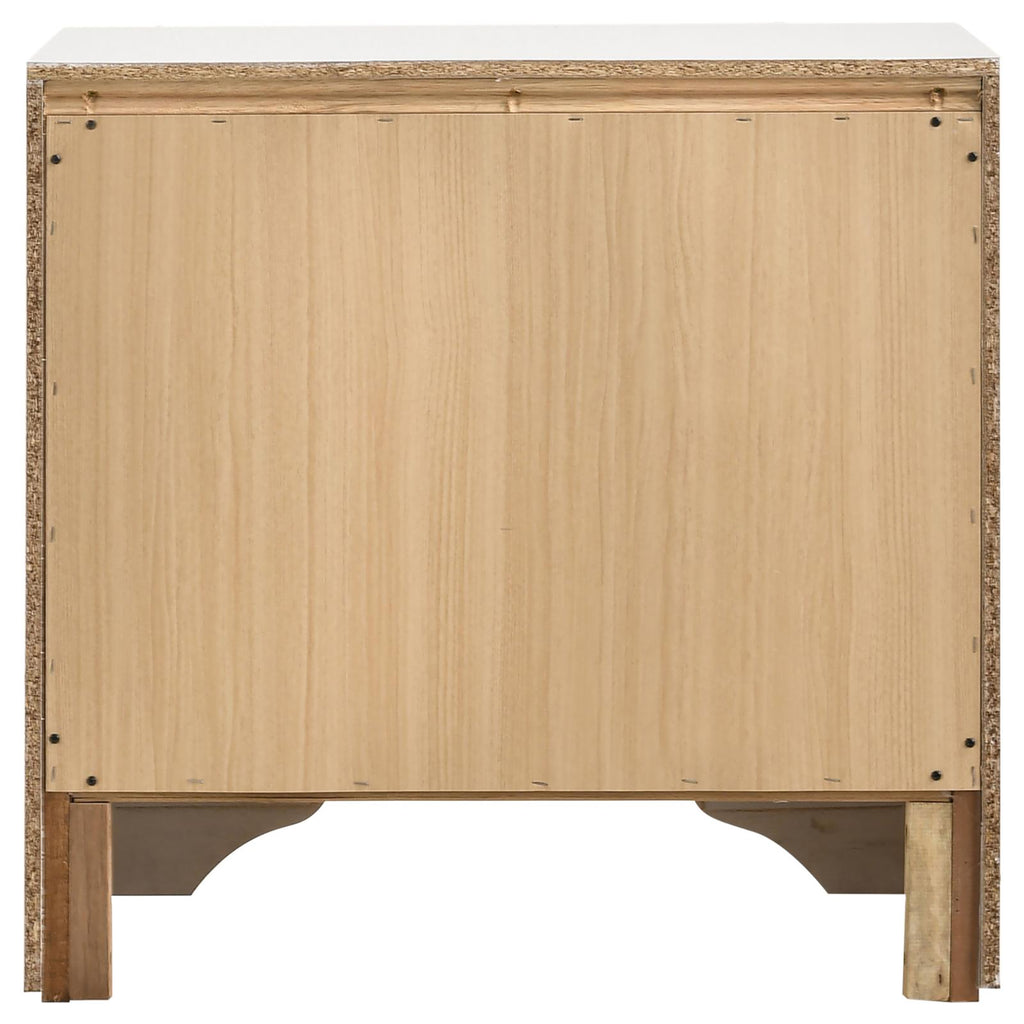 - The nightstand boasts a shapely base section, featuring sensual curves that contrast appealingly with its overall linear silhouette, adding visual interest and sophistication