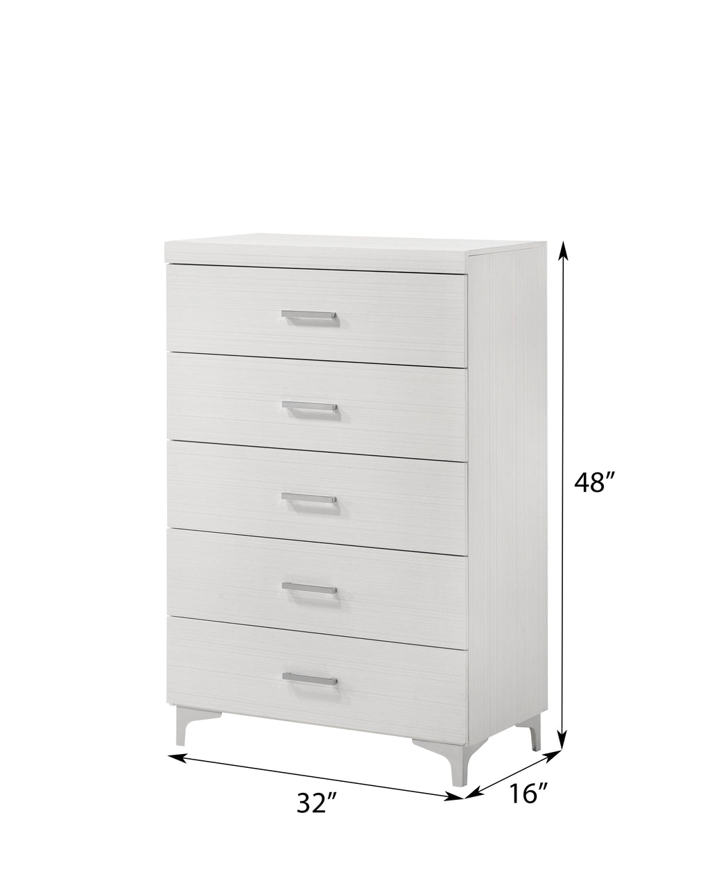 This spacious chest offers extensive storage with five drawers, efficiently organizing various items while showcasing durability and strength through dovetail joints on both front and back. Facilitating smooth functionality, metal center glides ensure easy access, complementing its classic rectangular design that maximizes storage in diverse room configurations.