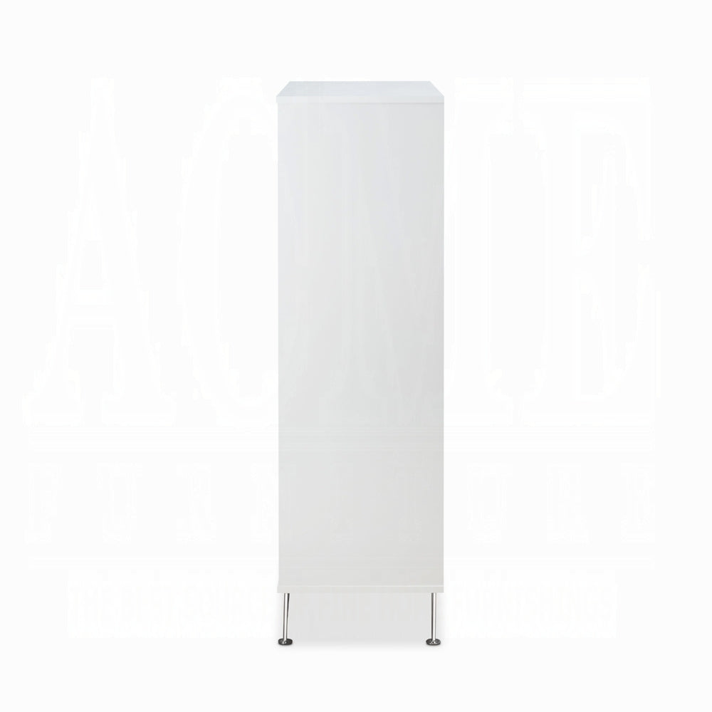 This unit features 5 drawers within a sturdy wooden case-frame, complemented by sleek chrome-finished metal legs, and includes side metal glide drawers for smooth functionality. With 5 drawers for generous storage, a robust wooden case-frame, and polished chrome-finished metal legs, this piece also offers side metal glide drawers for easy access.
