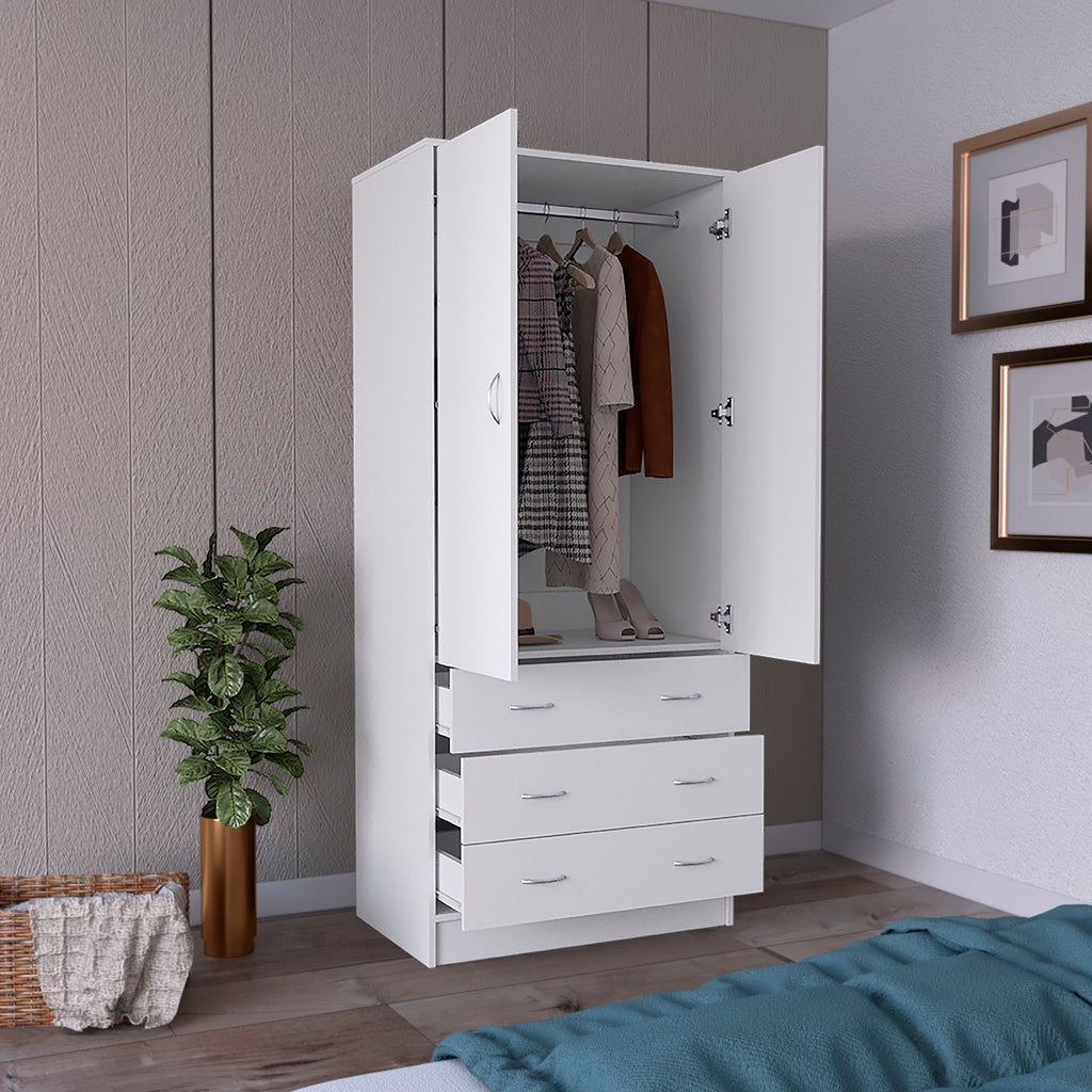 - Ample Storage Space: Featuring three spacious drawers and a two-door armoire, the Melfa Armoire offers plenty of room for clothes, accessories, or other items.