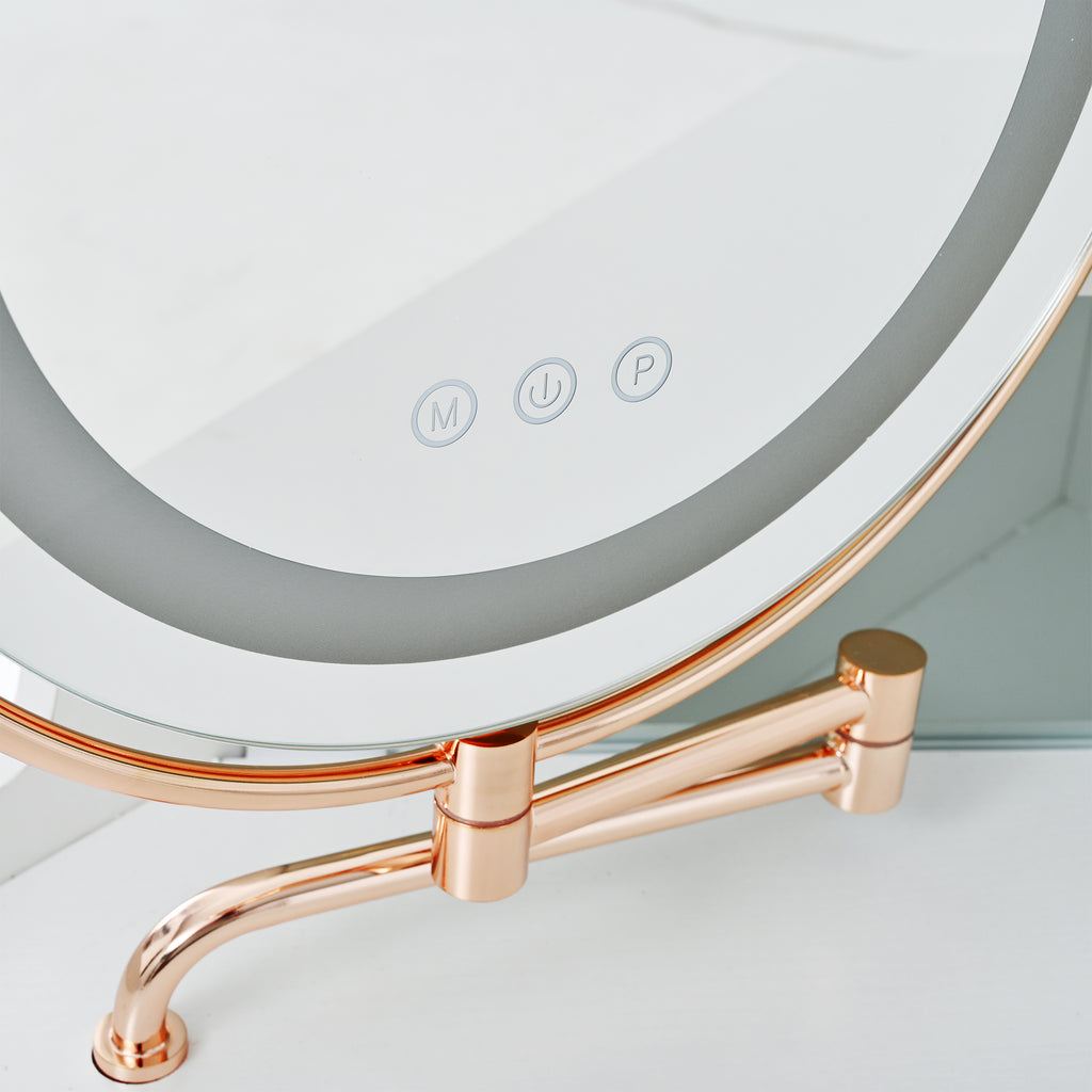 - Tri-Folding HD Mirror with 360° Rotation: The vanity features a unique round HD mirror with folding arms and a 360-degree rotatable surface. This versatile design allows you to illuminate every angle, making makeup application and hairstyling easier and more precise.